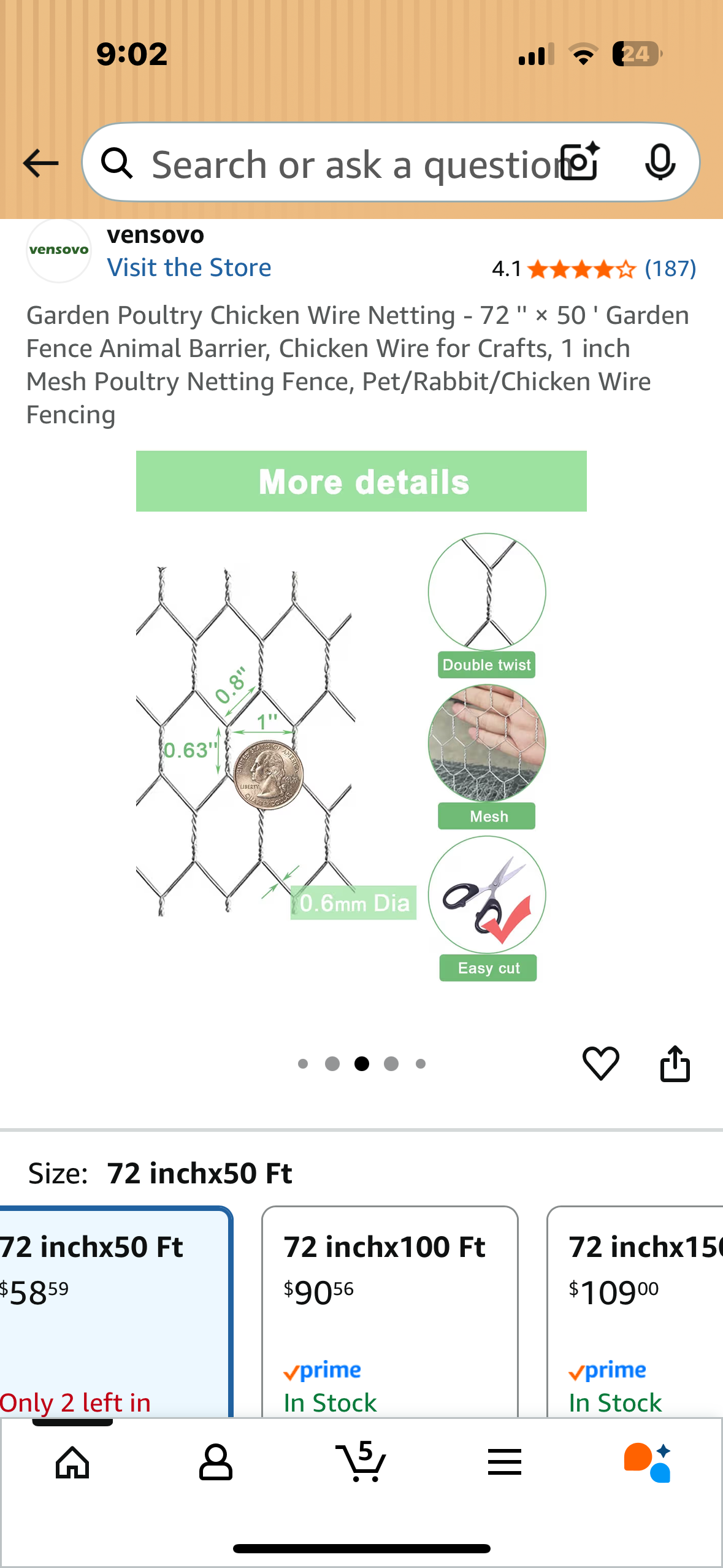Garden Poultry Chicken Wire Netting - 72" x 50 ' Garden Fence Animal Barrier, Chicken Wire for Crafts, 1 inch Mesh Poultry Netting Fence, Pet/Rabbit/Chicken Wire Fencing (G885)