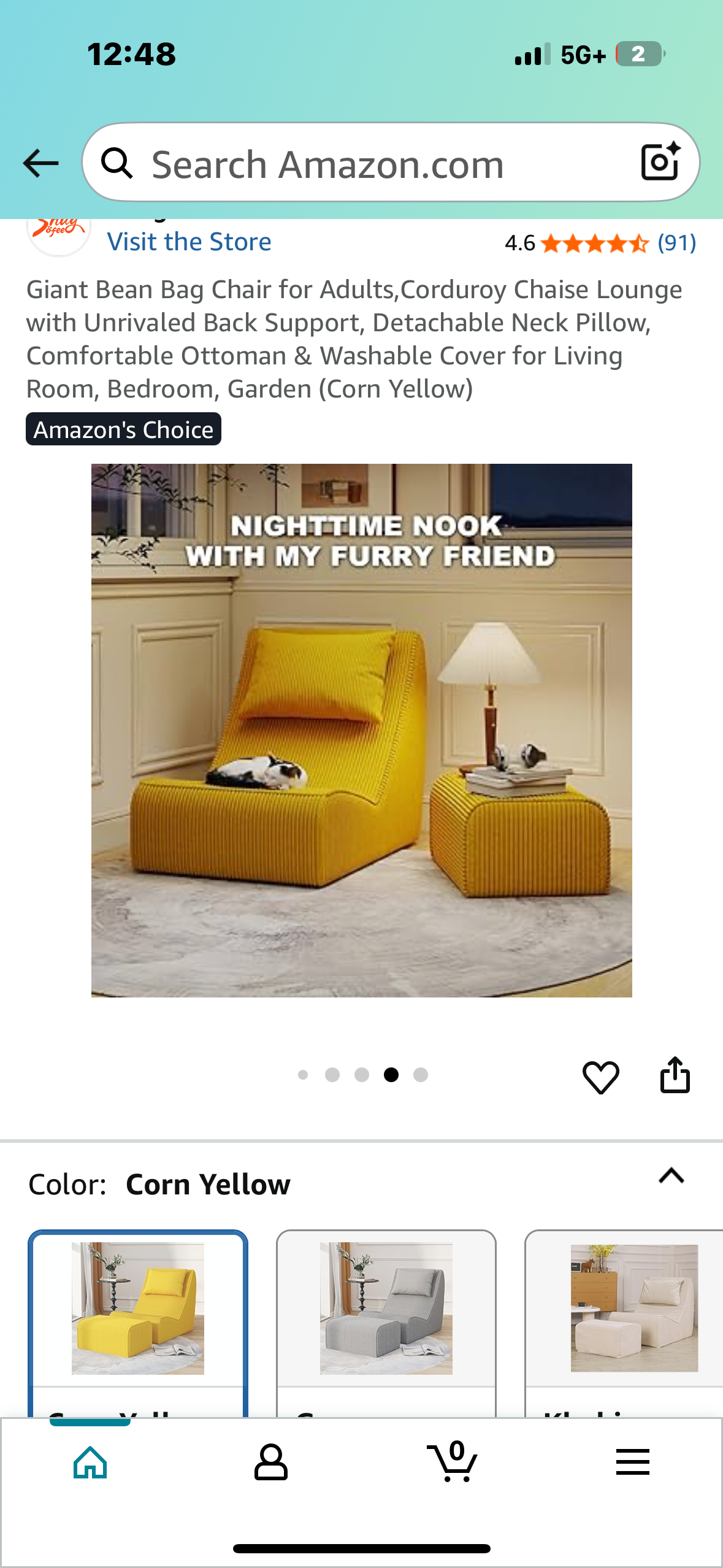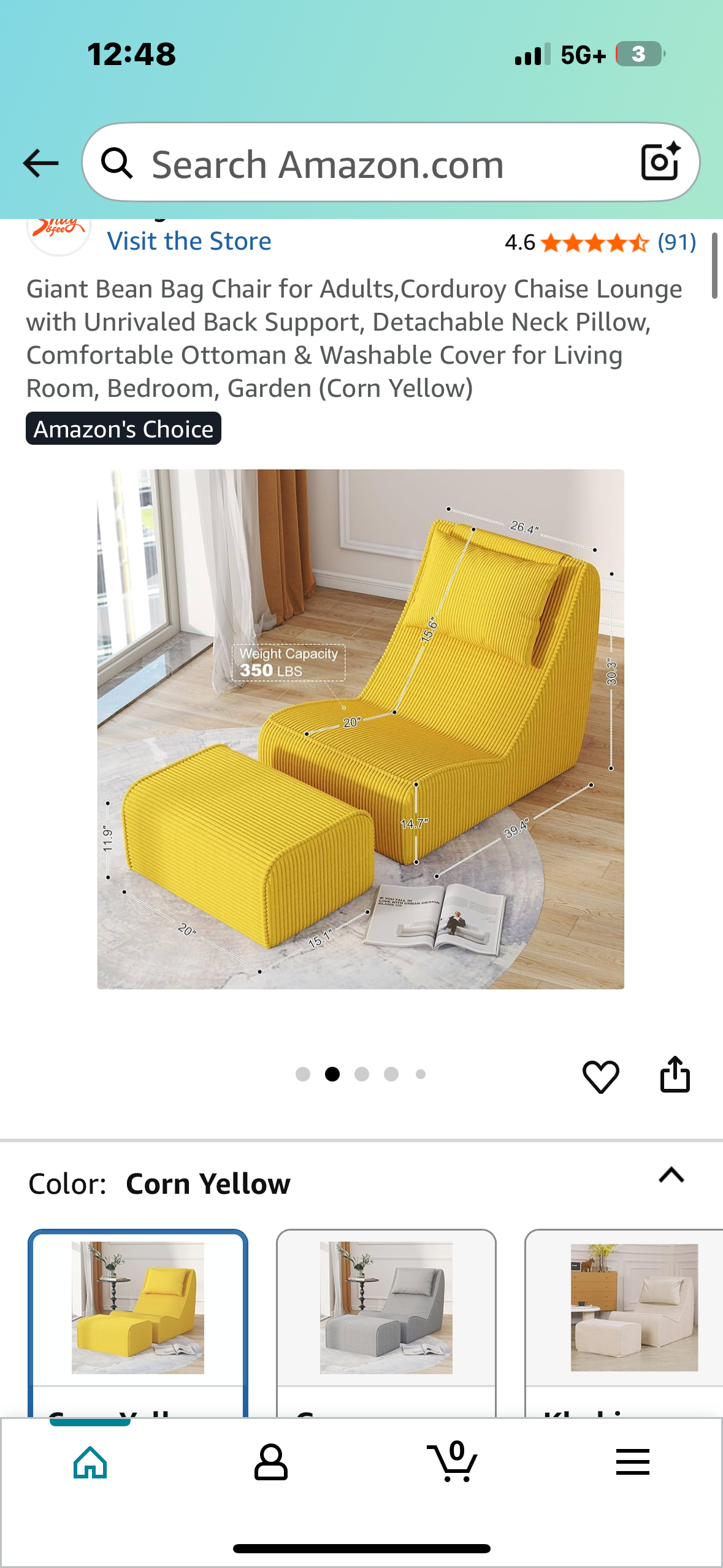 Giant Bean Bag Chair for Adults,Corduroy Chaise Lounge with Unrivaled Back Support, Detachable Neck Pillow, Comfortable Ottoman & Washable Cover (Corn Yellow) (L1017)