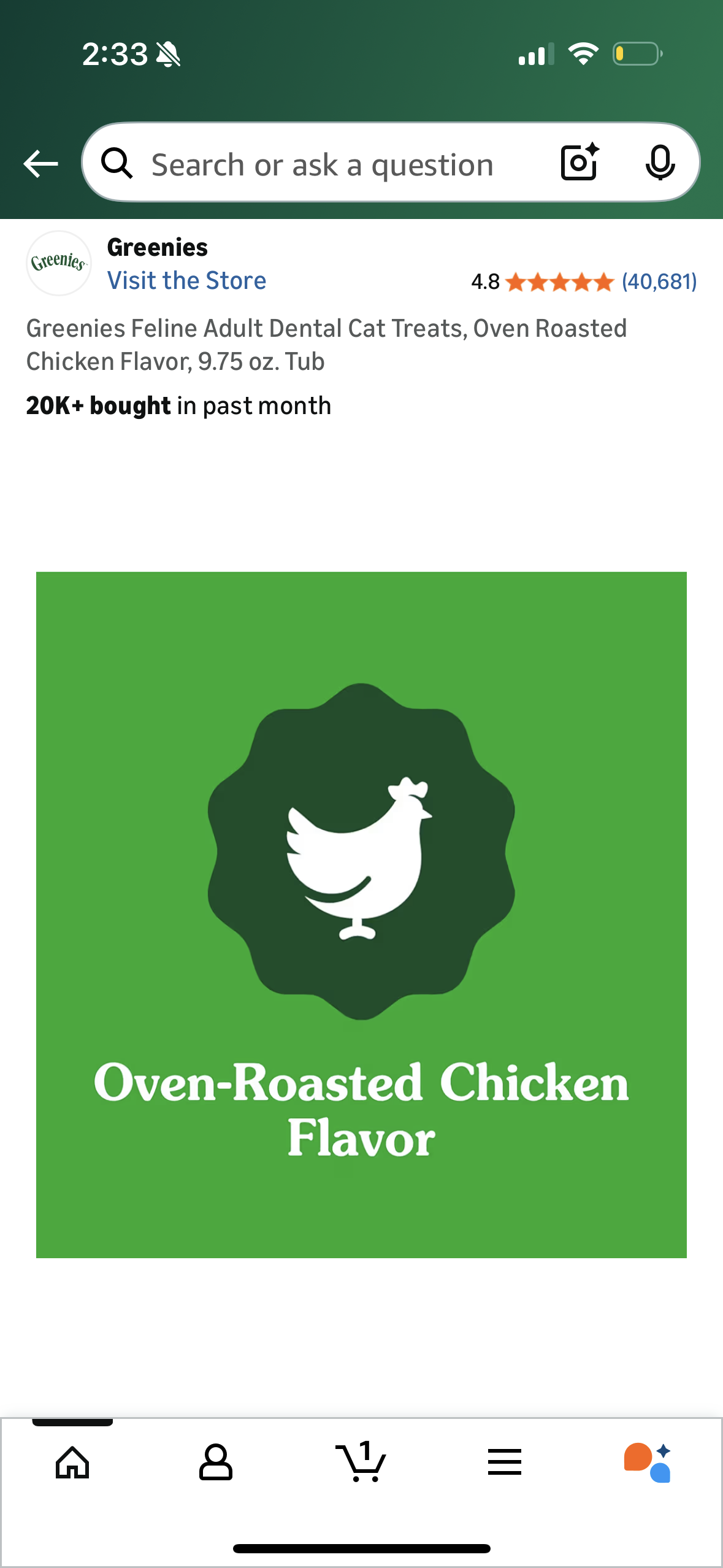 Greenies Feline Adult Dental Cat Treats, Oven Roasted Chicken Flavor, 9.75 oz. Tub