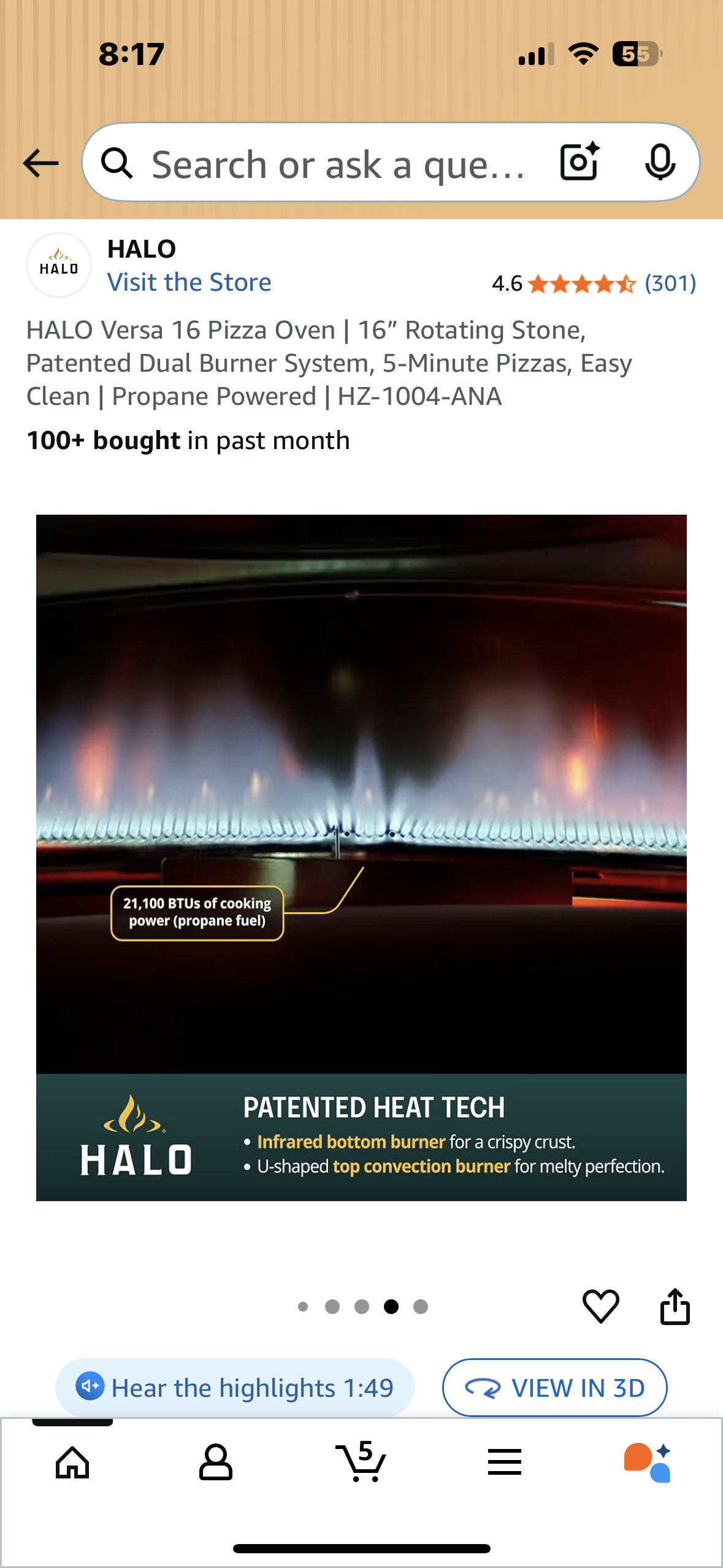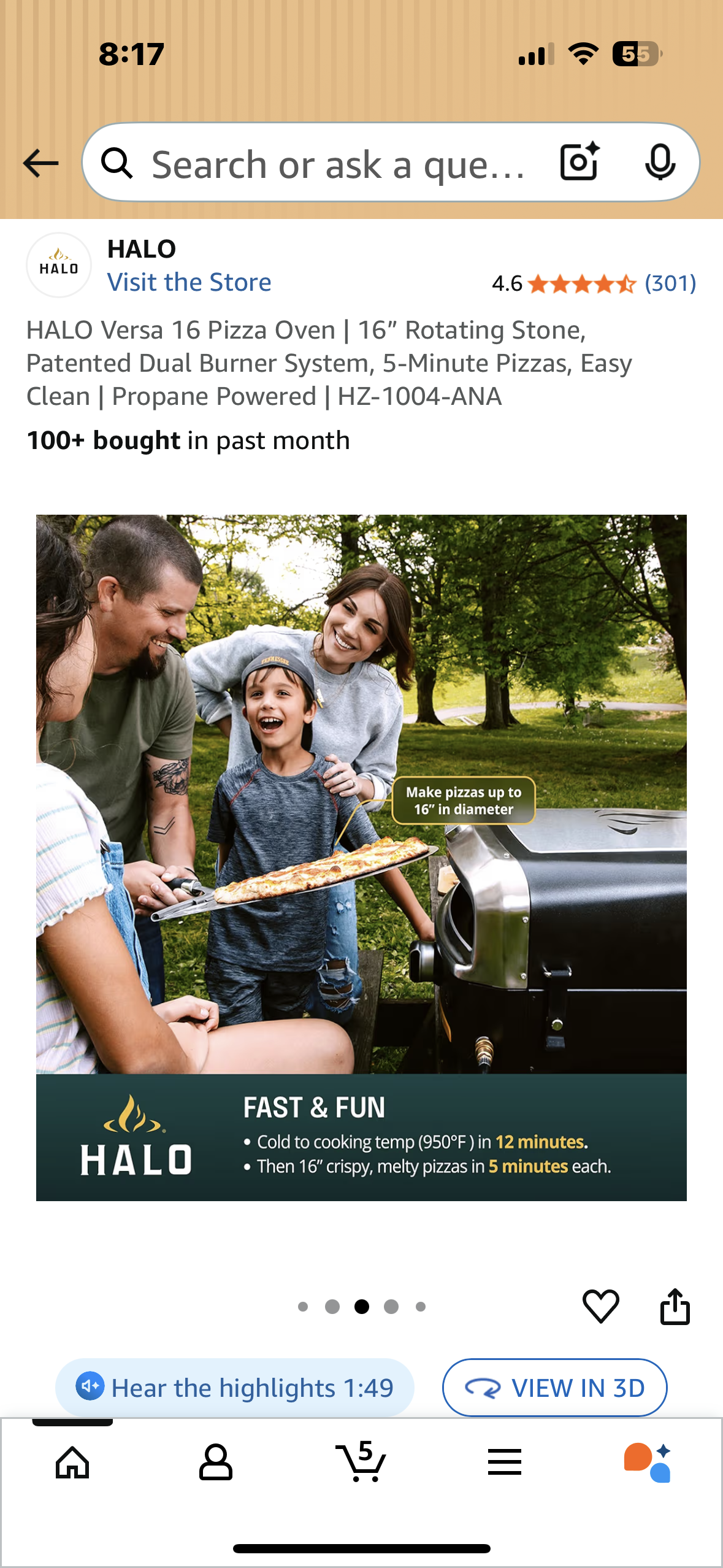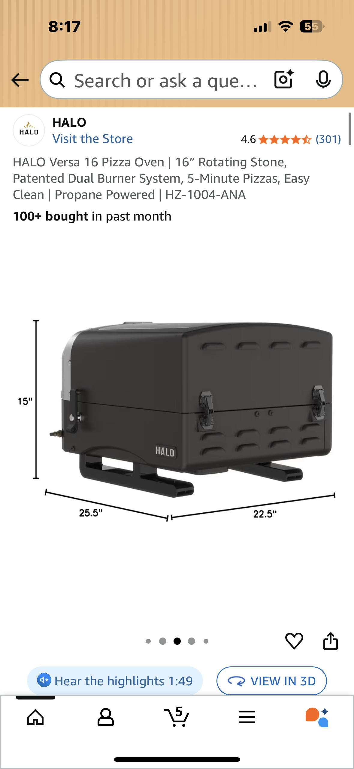 HALO Versa 16 Pizza Oven, 16” Rotating Stone, Patented Dual Burner System, 5-Minute Pizzas, Easy Clean, Propane Powered (R716)