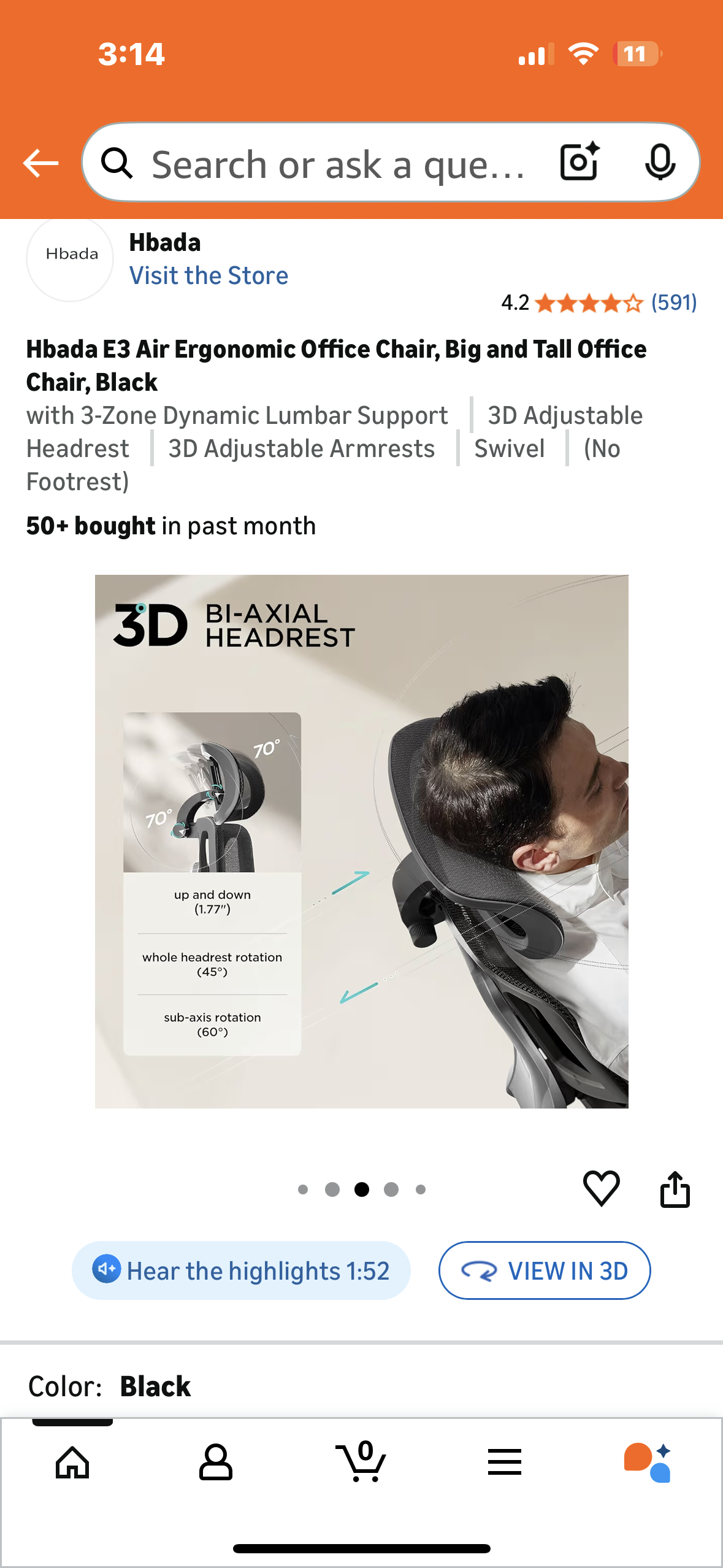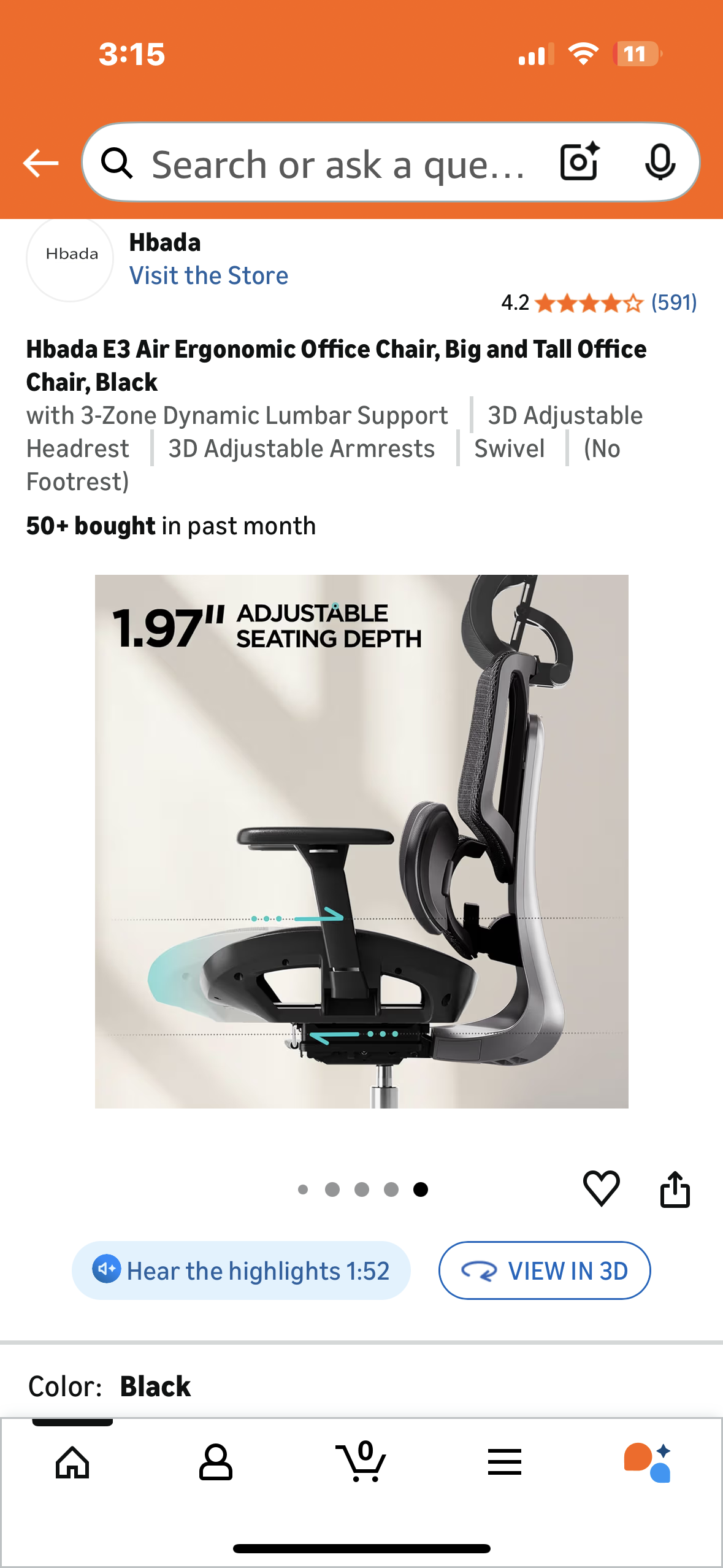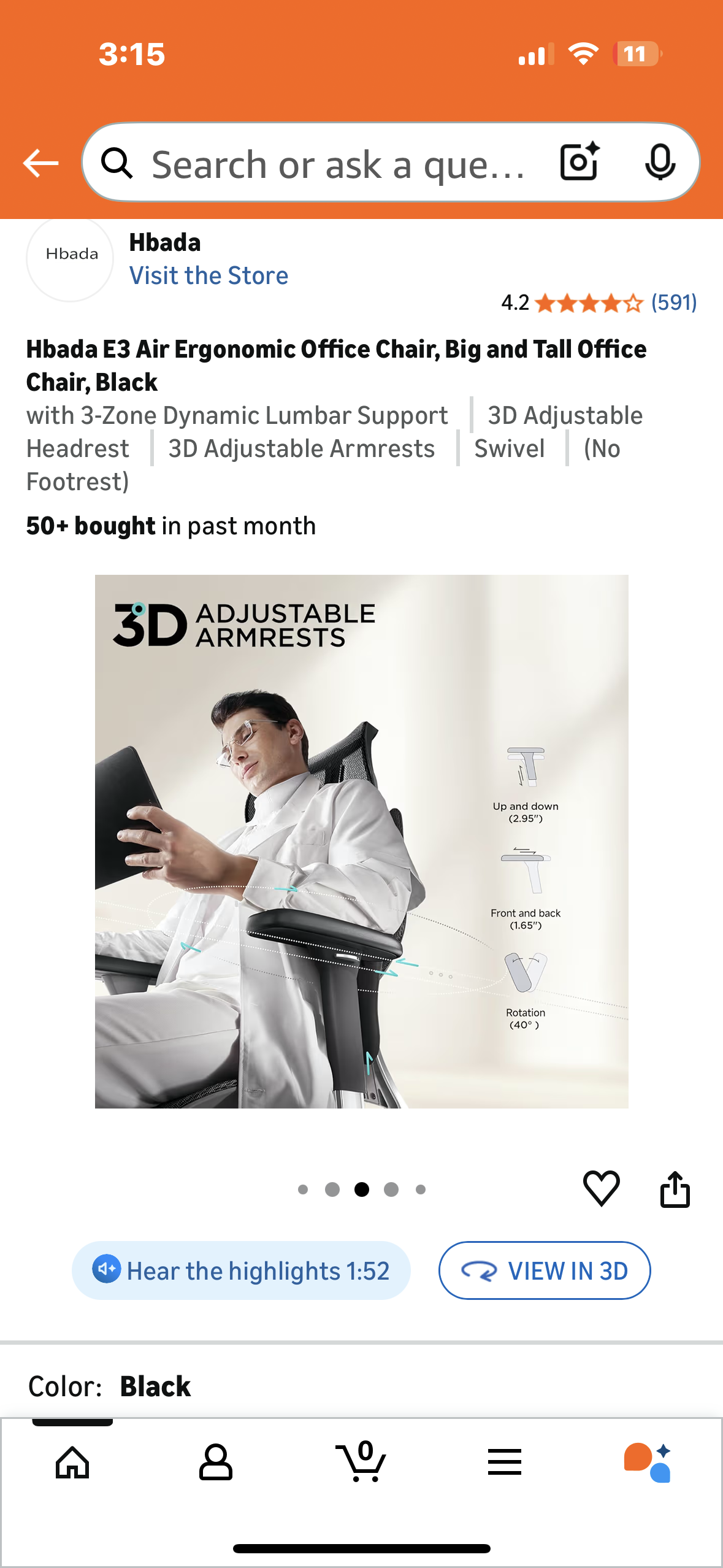 Hbada E3 Air Ergonomic Office Chair, Big and Tall Office Chair, Black (O462)