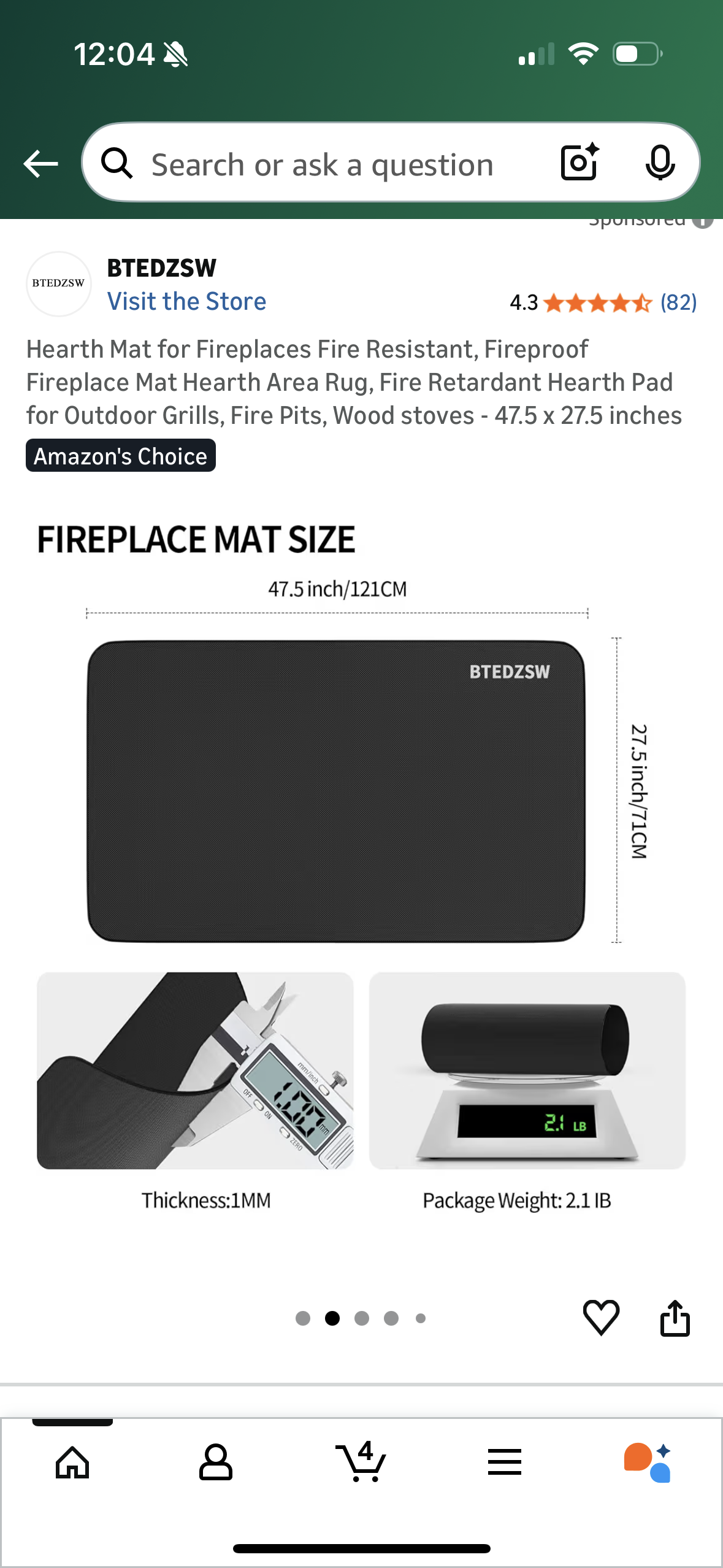 Hearth Mat for Fireplaces Fire Resistant, Fireproof Fireplace Mat Hearth Area Rug, Fire Retardant Hearth Pad for Outdoor Grills, Fire Pits, Wood stoves - 47.5 x 27.5 inches