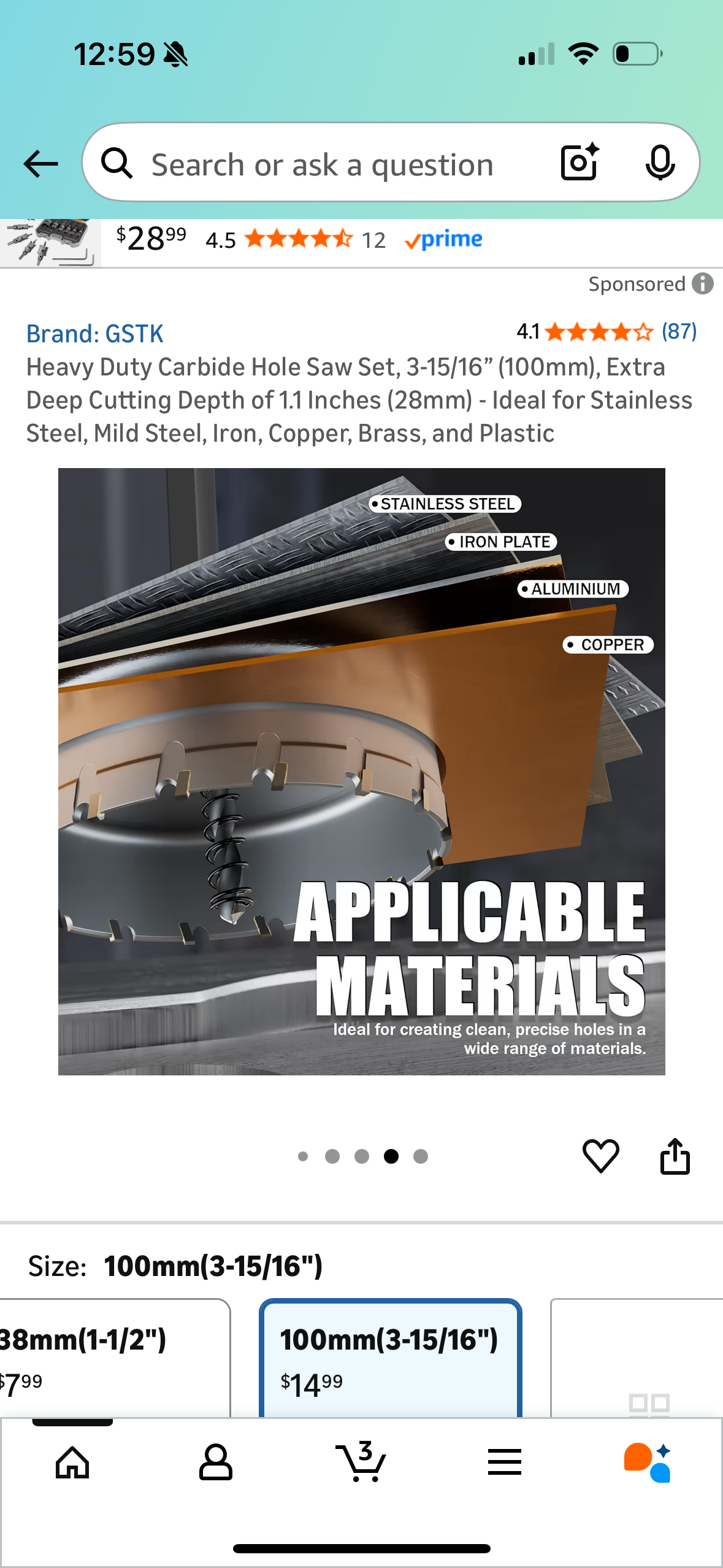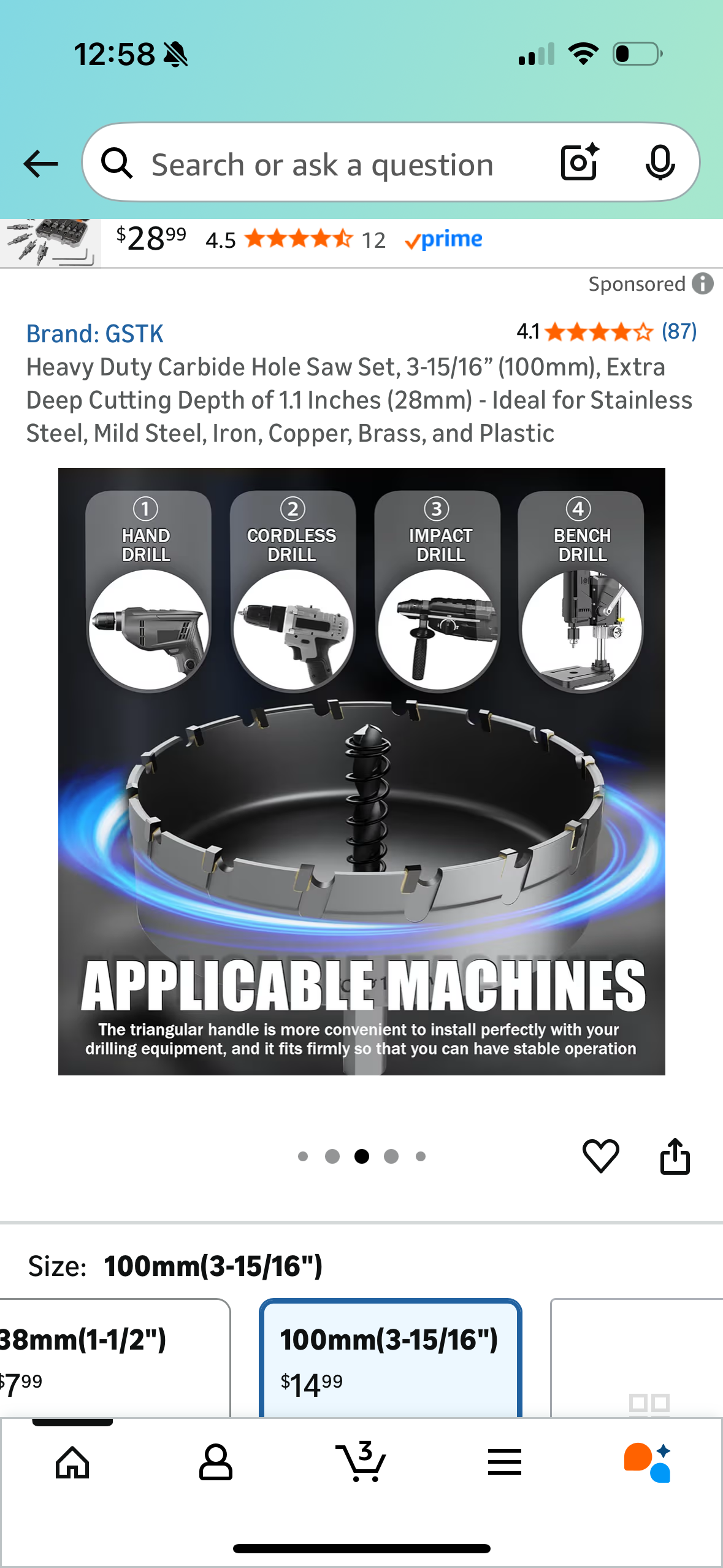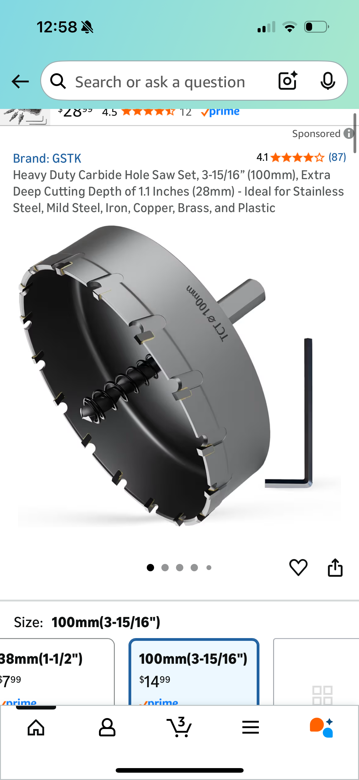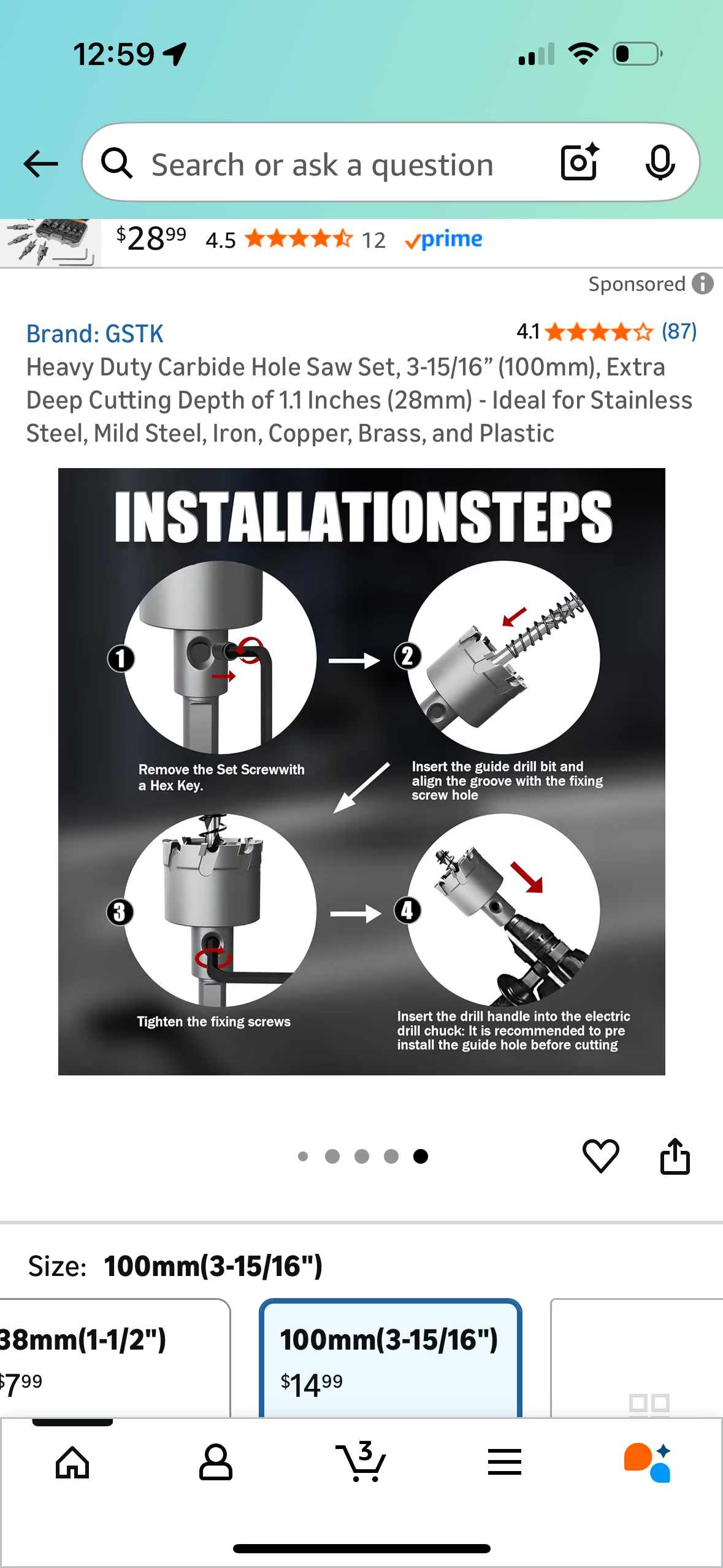 Heavy Duty Carbide Hole Saw Set, 3-15/16” (100mm), Extra Deep Cutting Depth of 1.1 Inches (28mm) - Ideal for Stainless Steel, Mild Steel, Iron, Copper, Brass, and Plastic