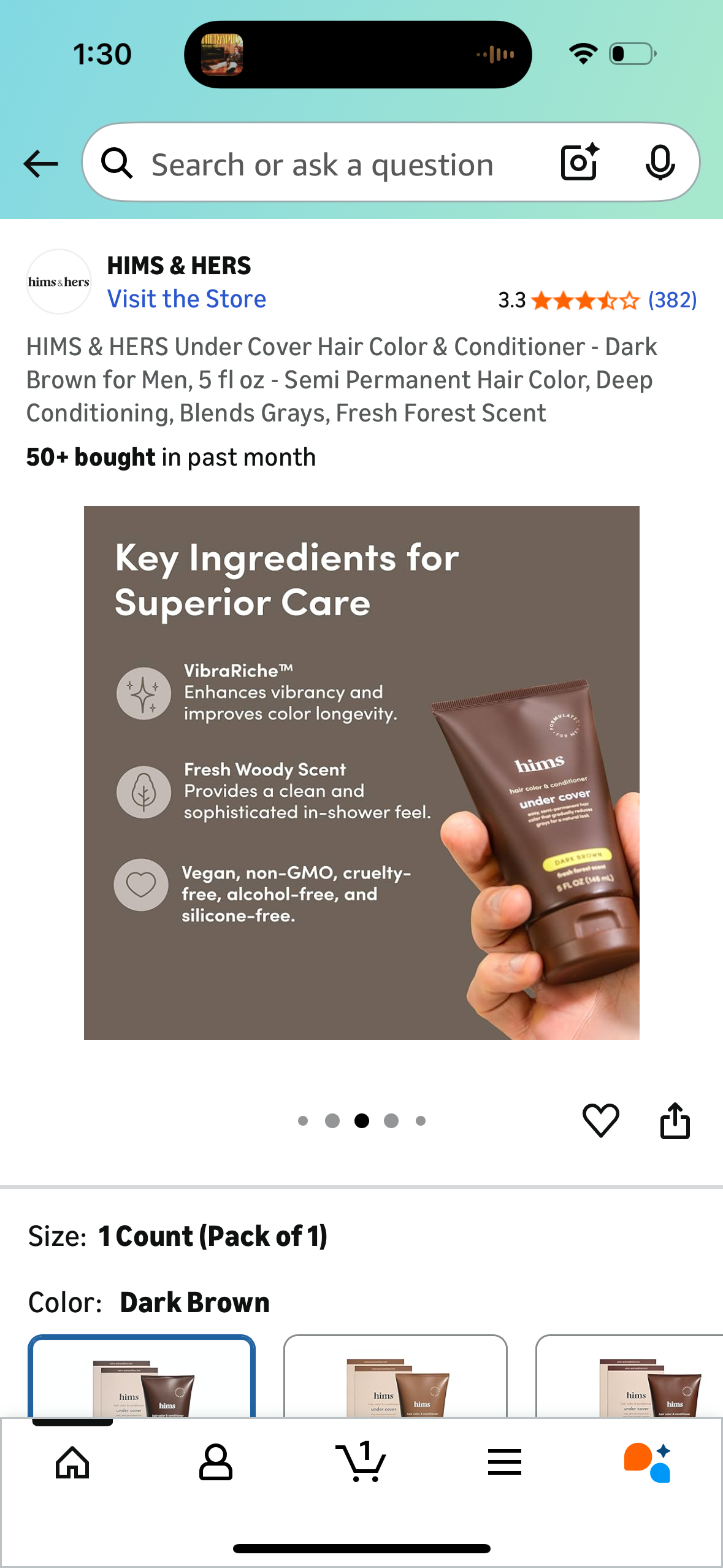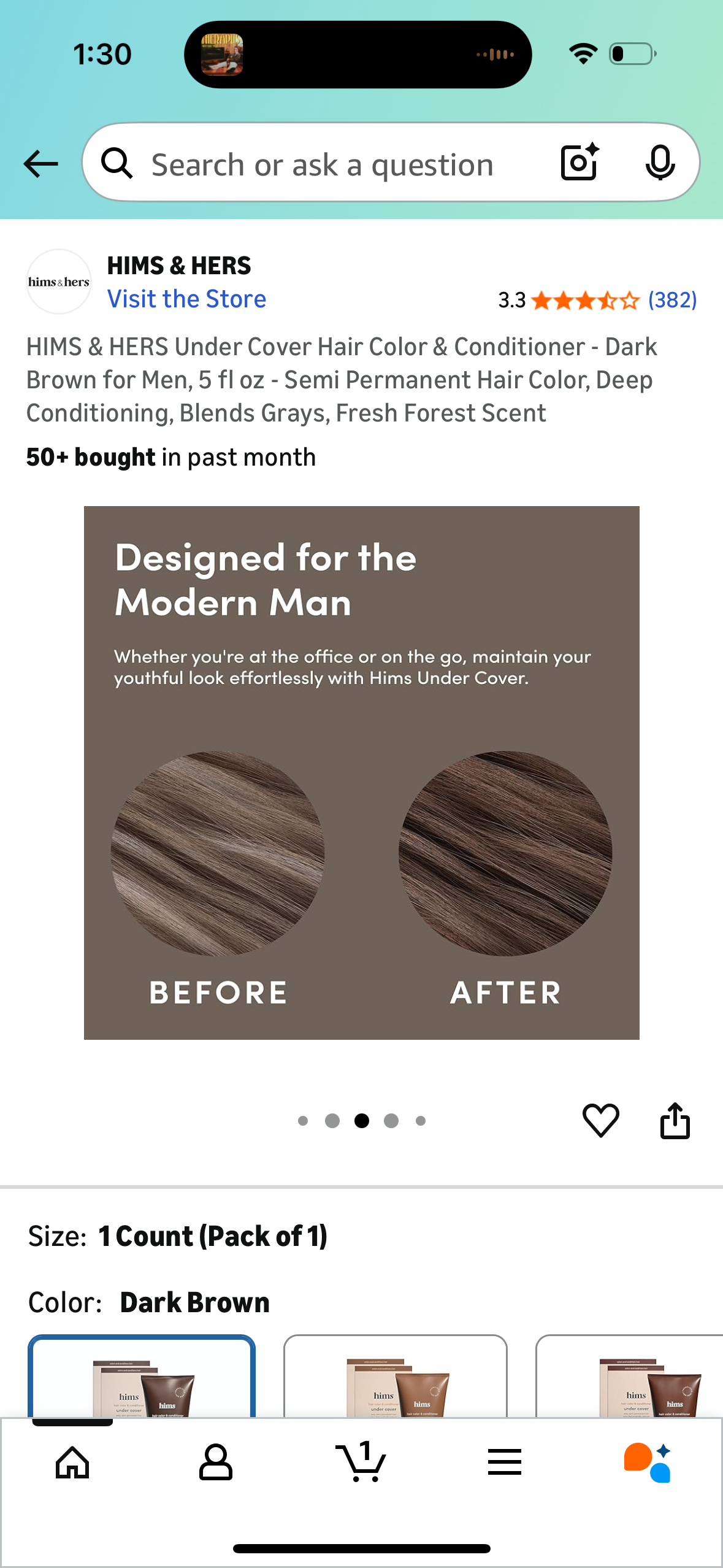 HIMS & HERS Under Cover Hair Color & Conditioner - Dark Brown for Men, 5 fl oz - Semi Permanent Hair Color, Deep Conditioning, Blends Grays, Fresh Forest Scent