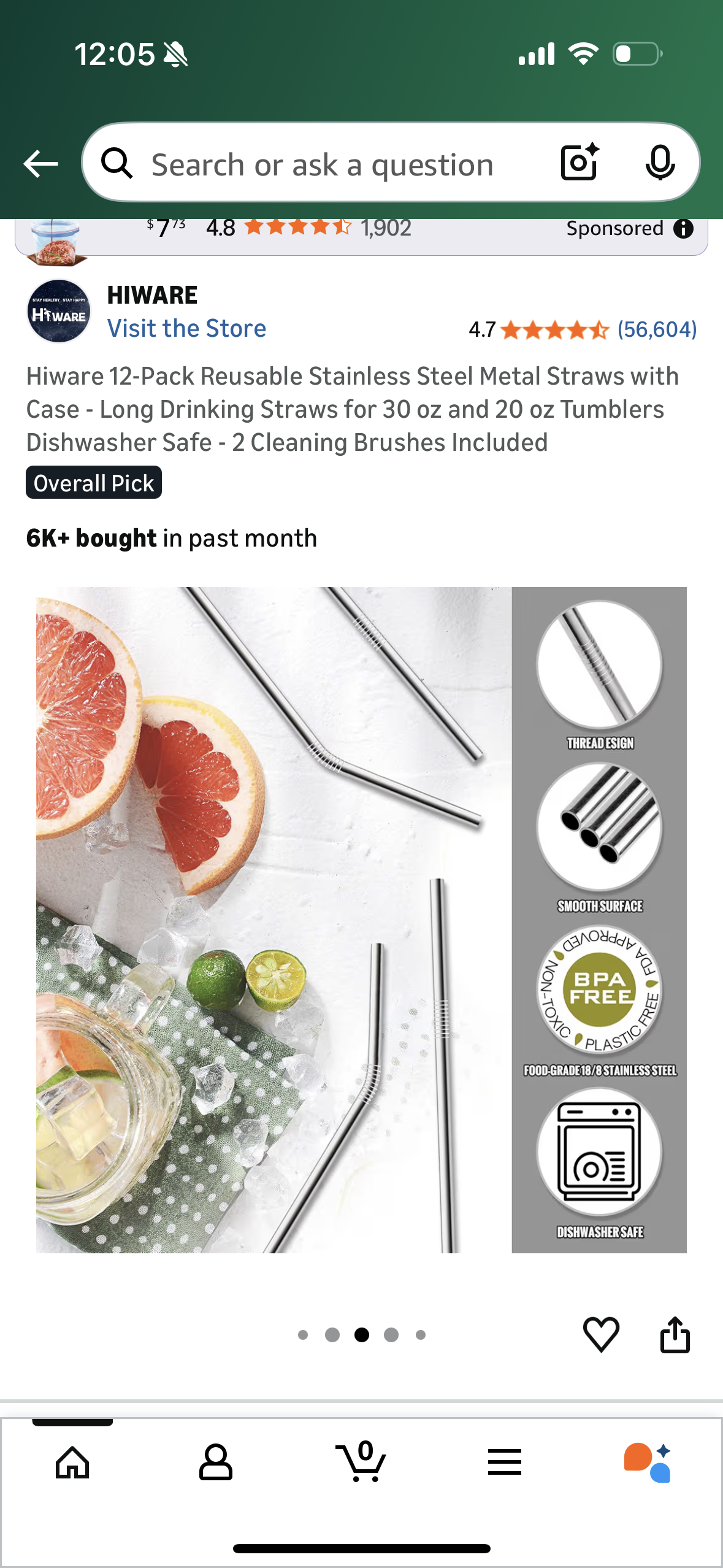 Hiware 12-Pack Reusable Stainless Steel Metal Straws with Case - Long Drinking Straws for 30 oz and 20 oz Tumblers Dishwasher Safe - 2 Cleaning Brushes Included