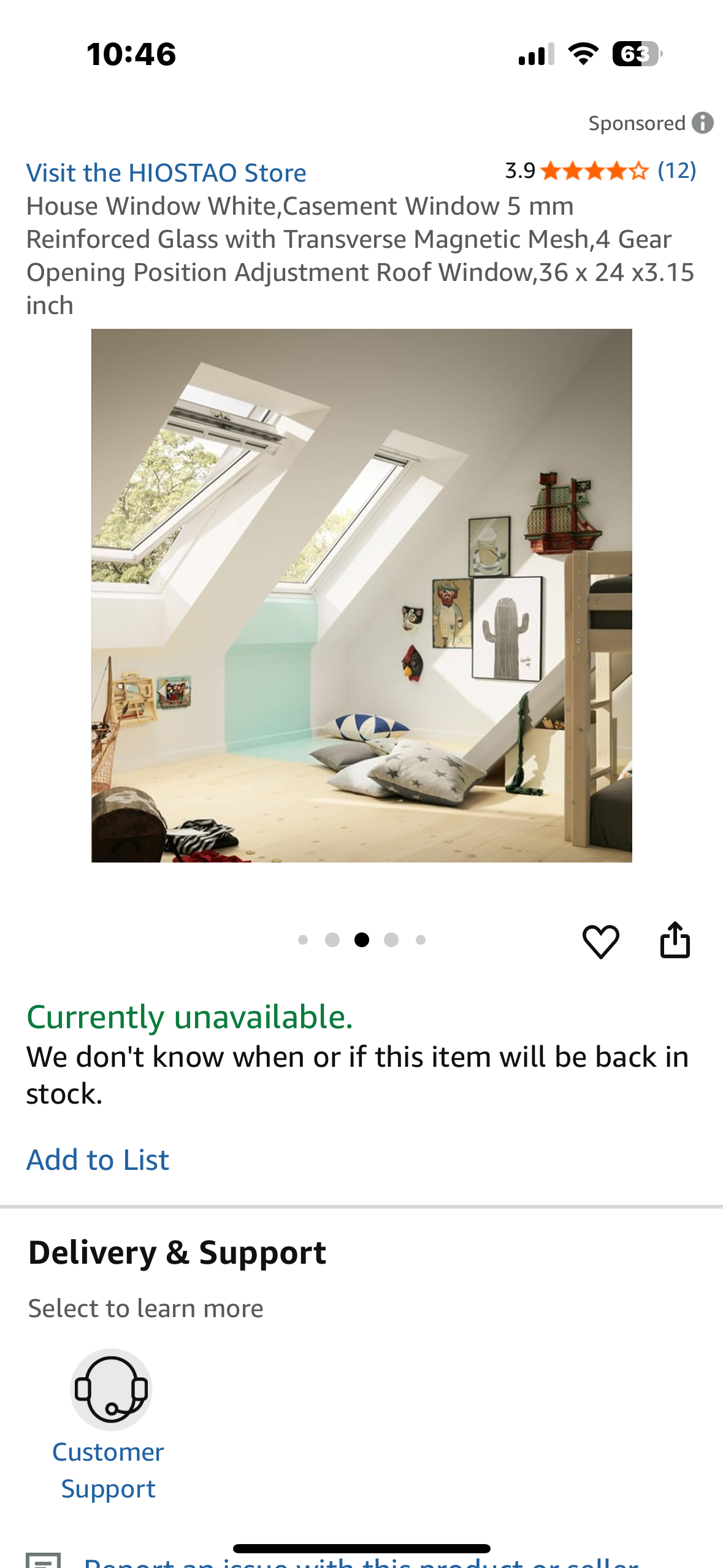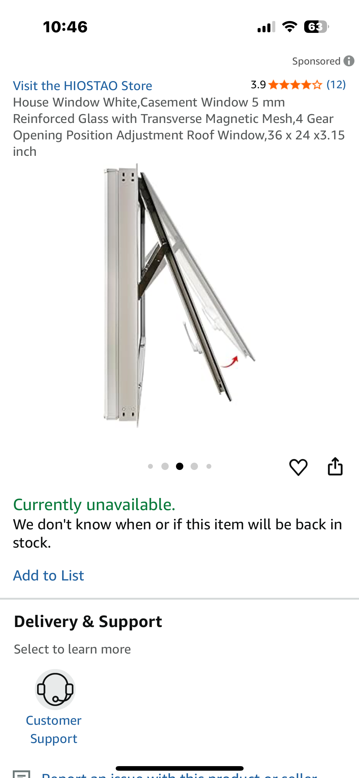 House Window White, Casement Window 5 mm Reinforced Glass with Transverse Magnetic Mesh, 4 Gear Opening Position Adjustment Roof Window, 36 x 24 x3.15 inch (R698)