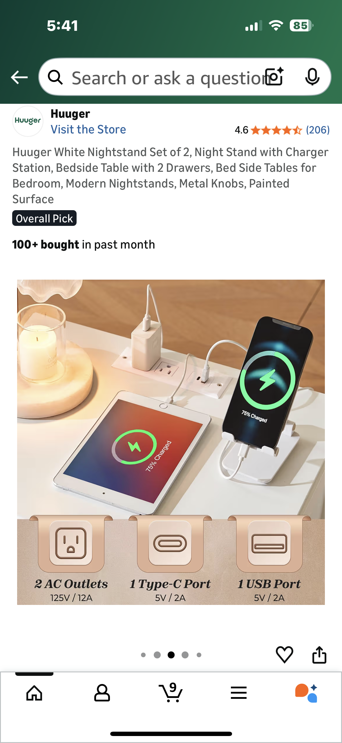 Huuger White Nightstand Set of 2, Night Stand with Charger Station, Bedside Table with 2 Drawers, Modern Nightstands, Metal Knobs, Painted Surface Overall Pick (L1107)