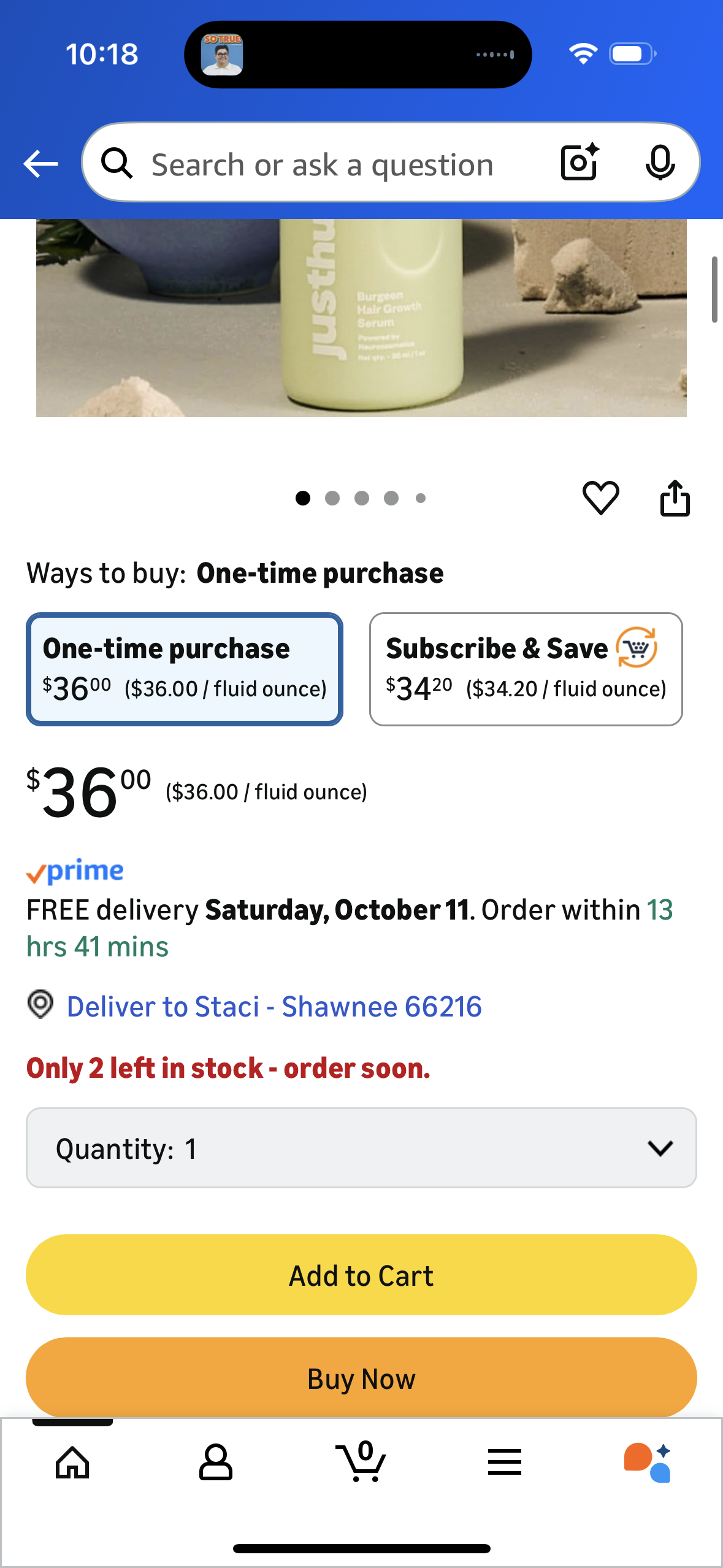 Justhuman Hair Serum For Hair Growth & Hair Loss Protection In 30 Days, Dual Action Volumizing/Thickening Serum With Burgeon-Up Stem Extract For Men & Women, Sulfate Free, Paraben Free, 30ml