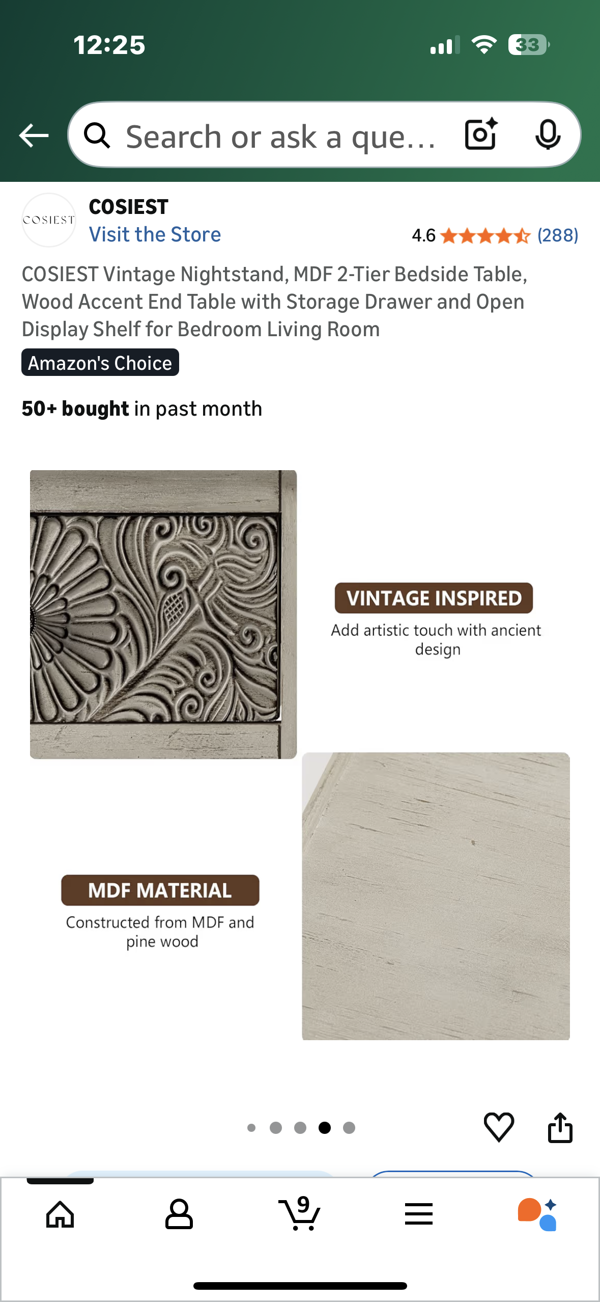 COSIEST Vintage Nightstand, 2-Tier Bedside Table, Wood Accent End Table with Storage Drawer and Open Display Shelf for Bedroom Living Room (L1084)