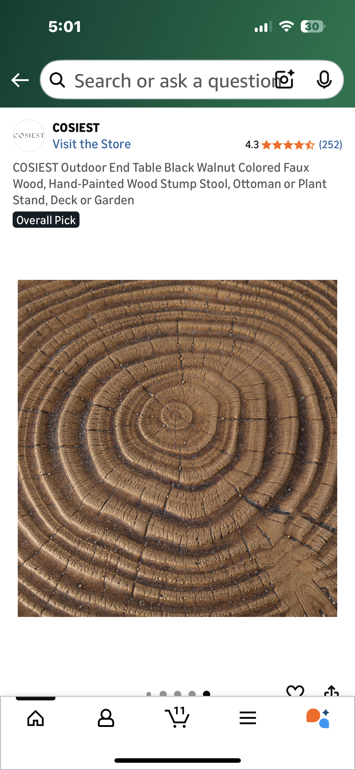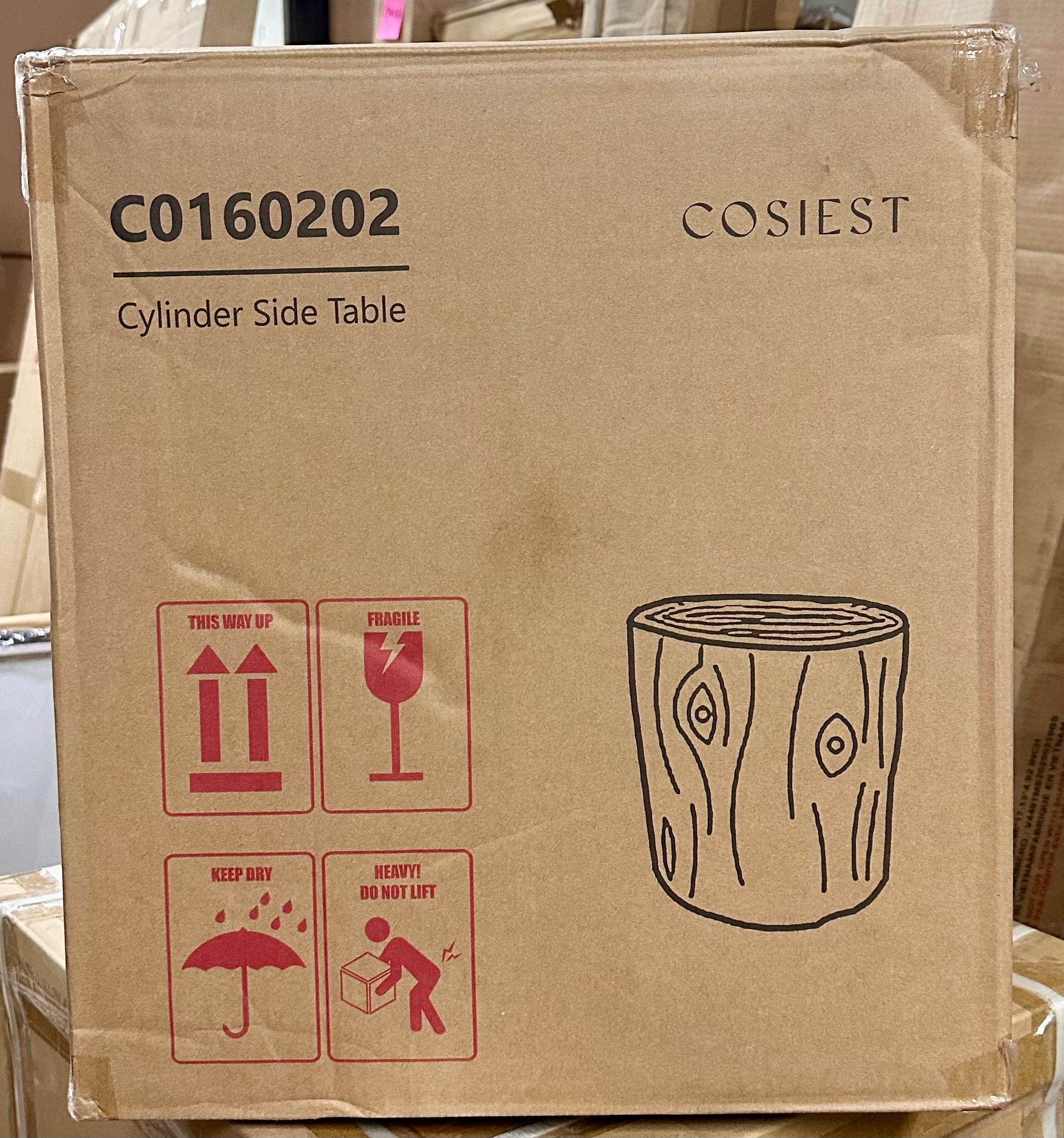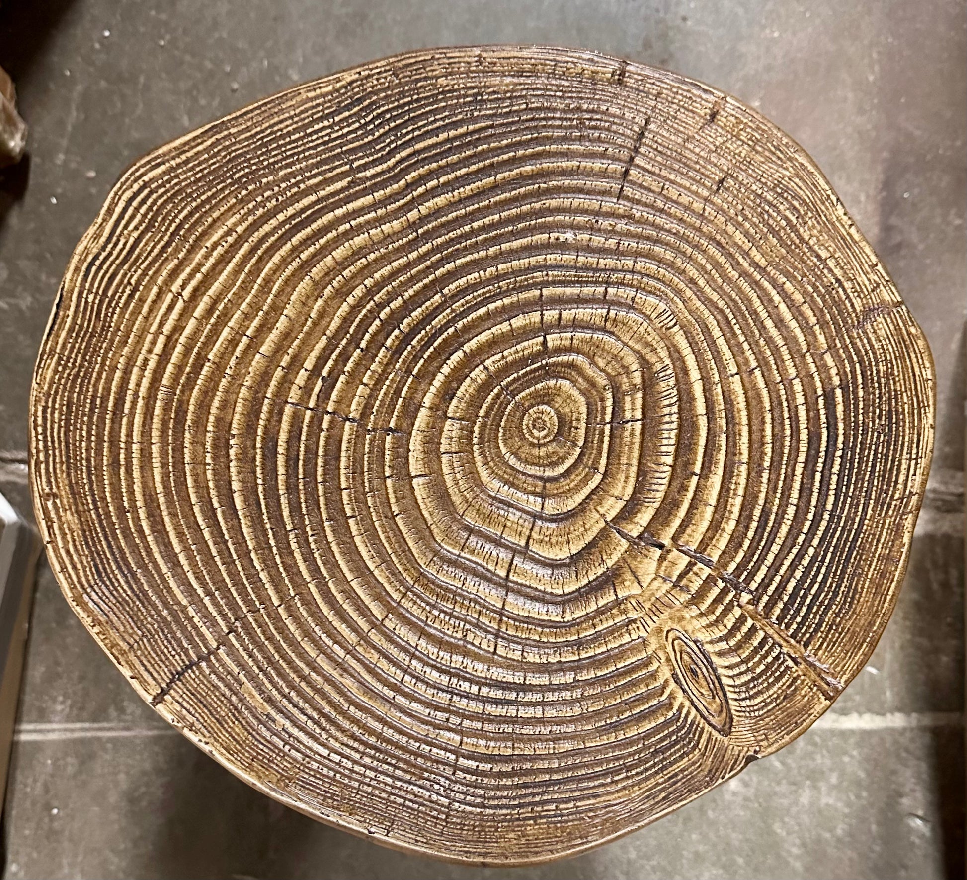 COSIEST Outdoor End Table Walnut Colored Faux Wood, Hand-Painted Wood Stump Stool, Ottoman or Plant Stand, Deck or Garden (L1092)