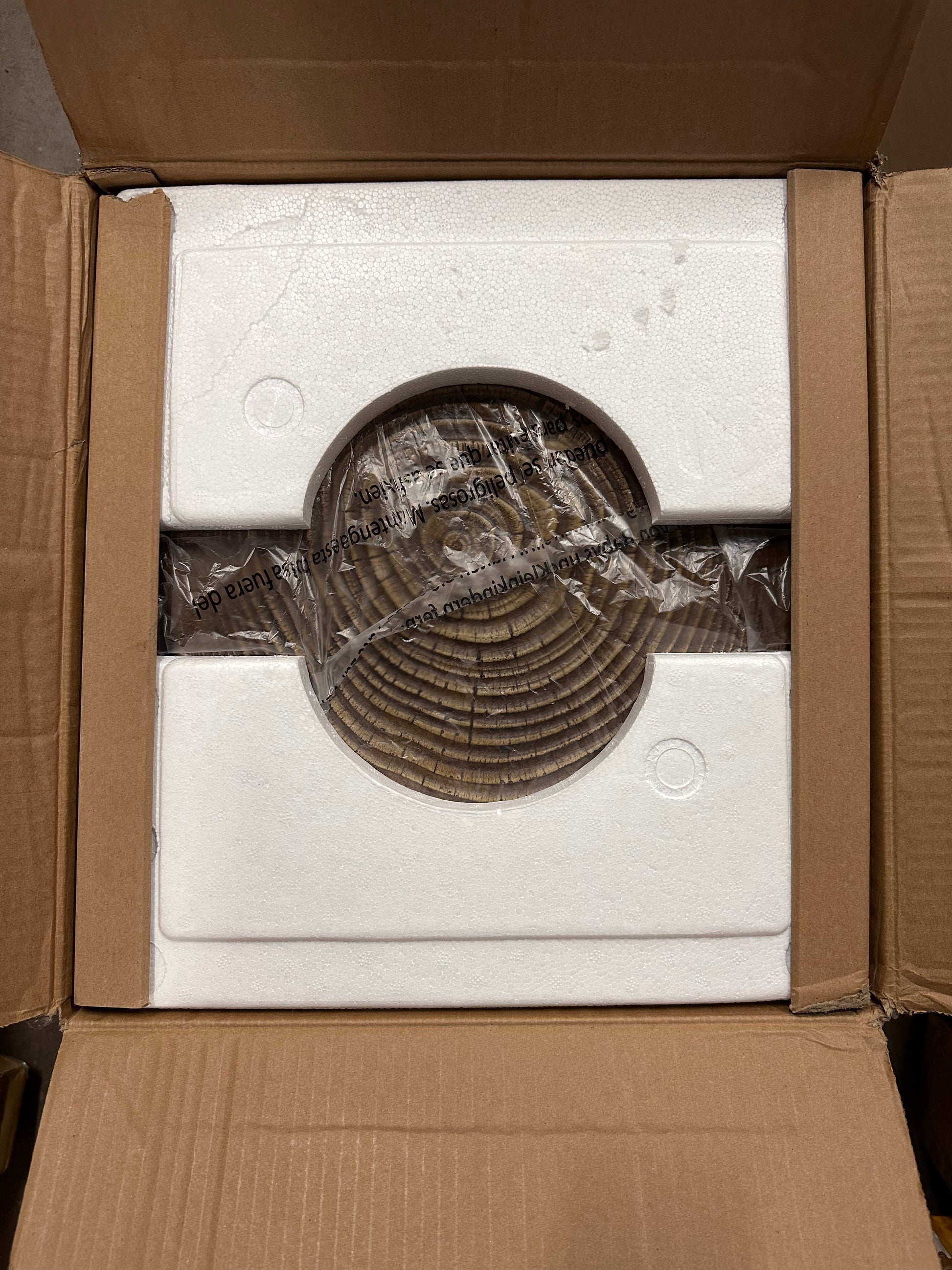 Item is made with a unique material called MgO composite. It is very durable and feels like a lighter composite version of concrete.