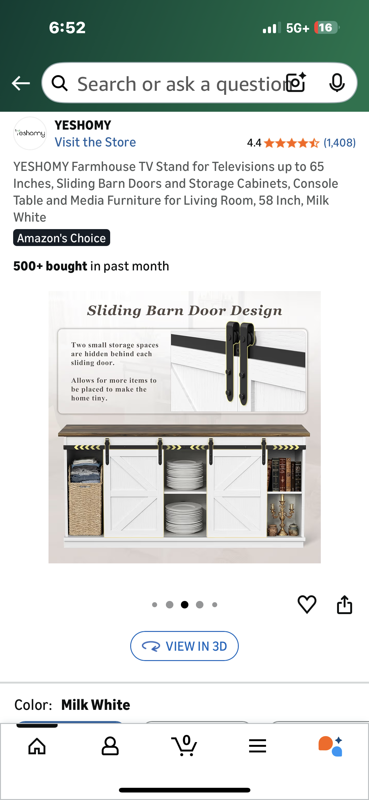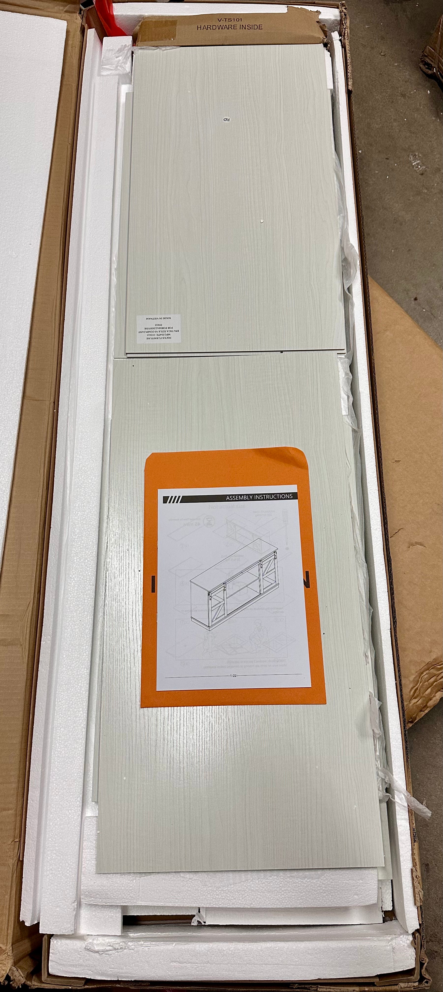 YESHOMY Farmhouse TV Stand for Televisions up to 65”, Sliding Barn Doors and Storage Cabinets, Console Table and Media Furniture for Living Room, Milk White, (L1110)