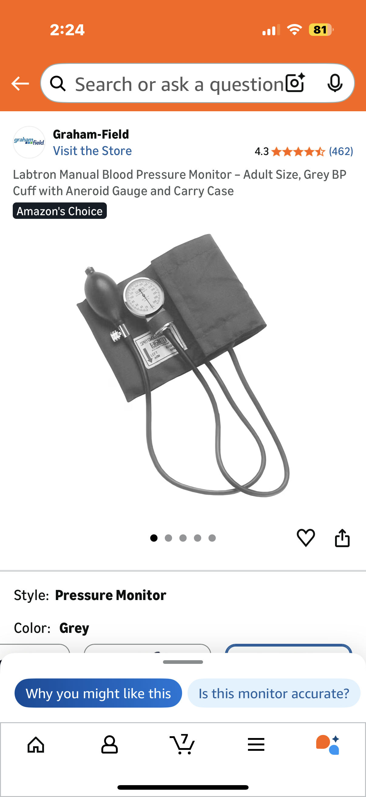Labtron Manual Blood Pressure Monitor – Adult Size, Grey BP Cuff with Aneroid Gauge and Carry Case
