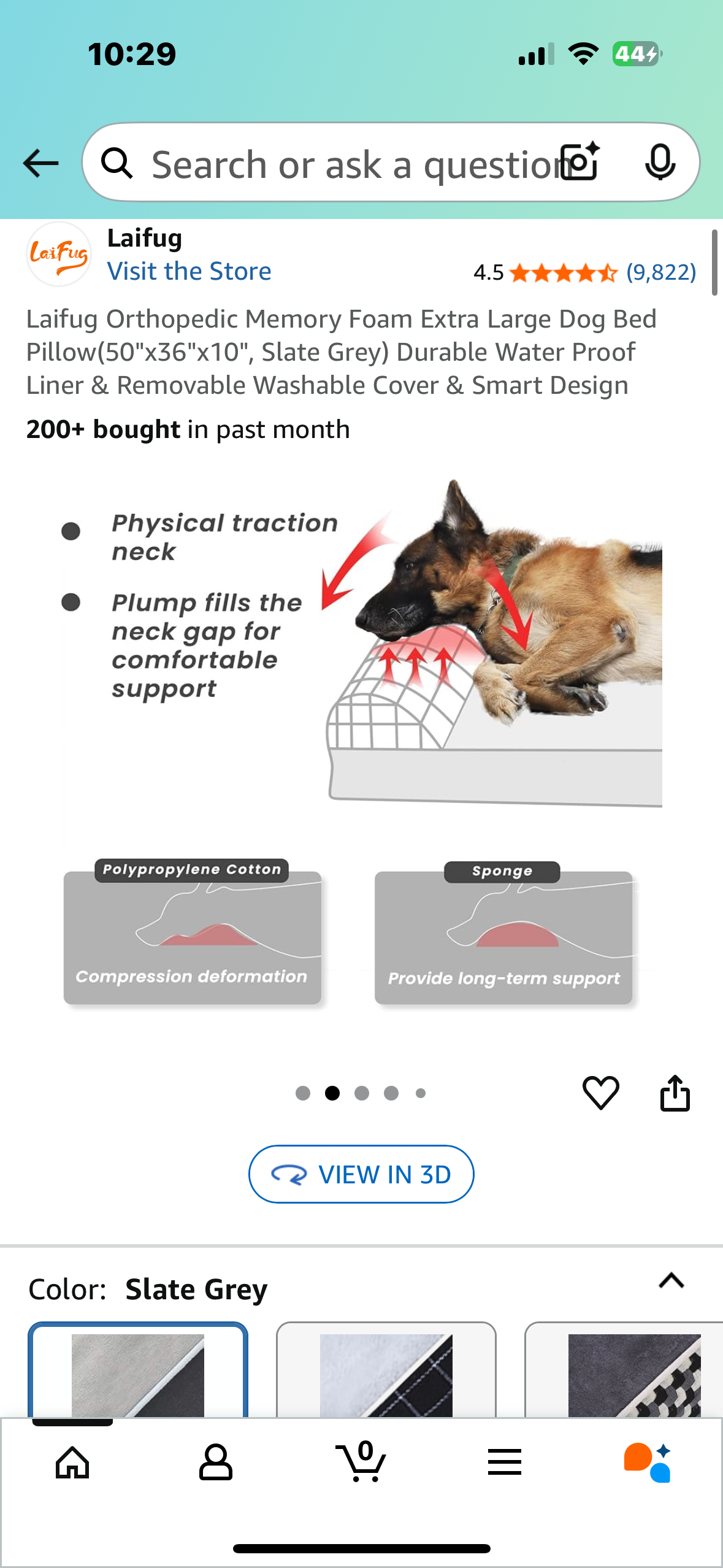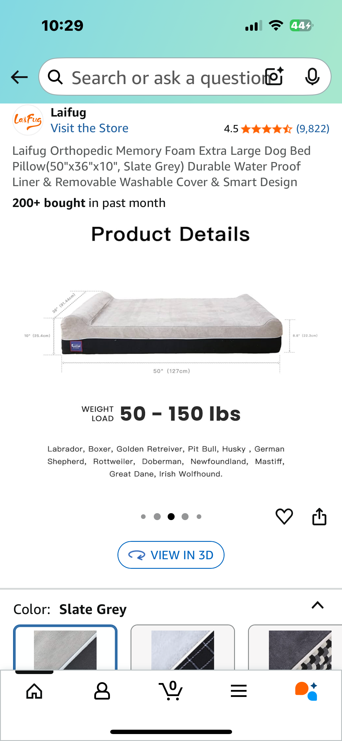 Laifug Orthopedic Memory Foam Extra Large Dog Bed, (50"x36"x10", Slate Grey), Durable Water Proof Liner & Removable Washable Cover (R680)