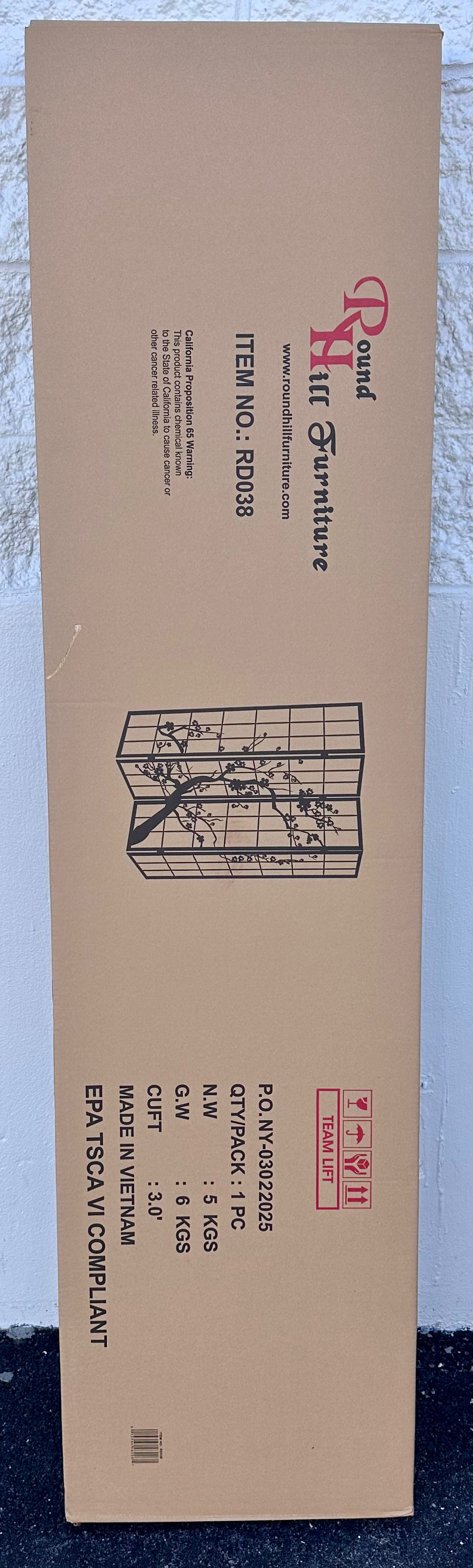 Roundhill Furniture Black Japanese 4-Panel Screen Room Divider, Plum Blossom (L1039)
