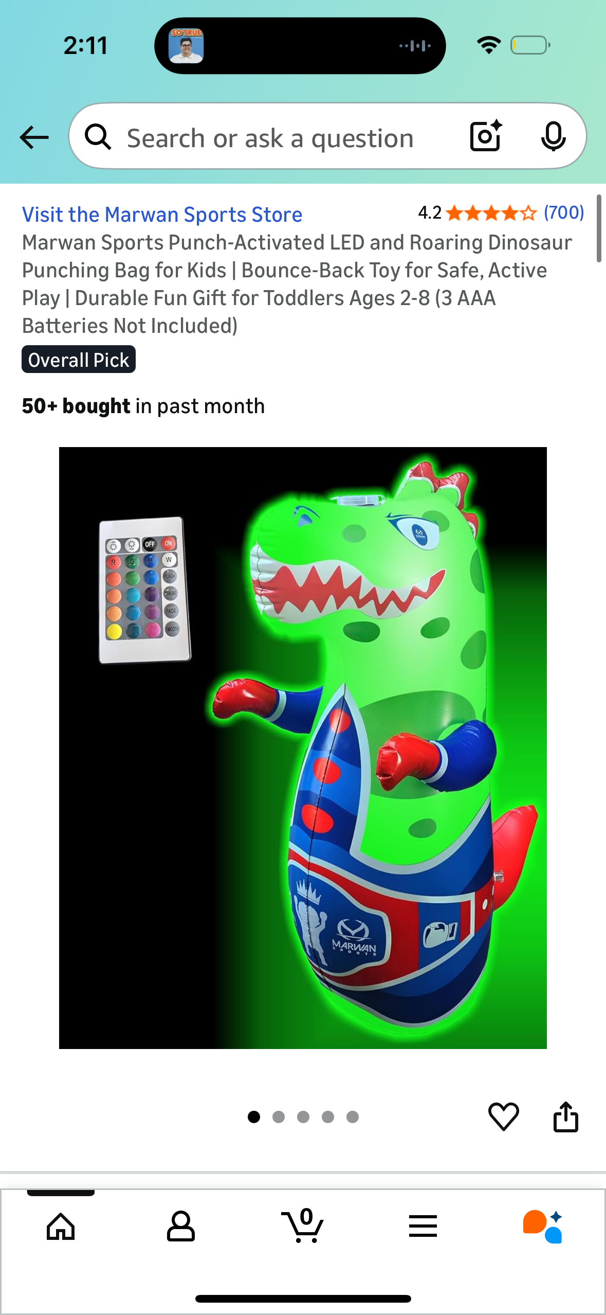 Marwan Sports Punch-Activated LED and Roaring Dinosaur Punching Bag for Kids | Bounce-Back Toy for Safe, Active Play | Durable Fun Gift for Toddlers Ages 2-8 (3 AAA Batteries Not Included)