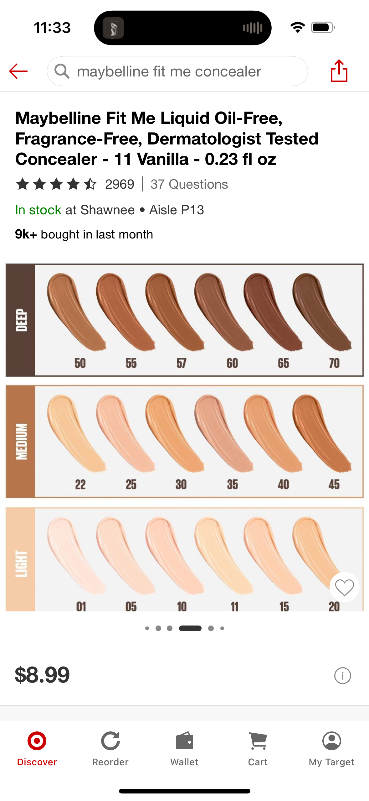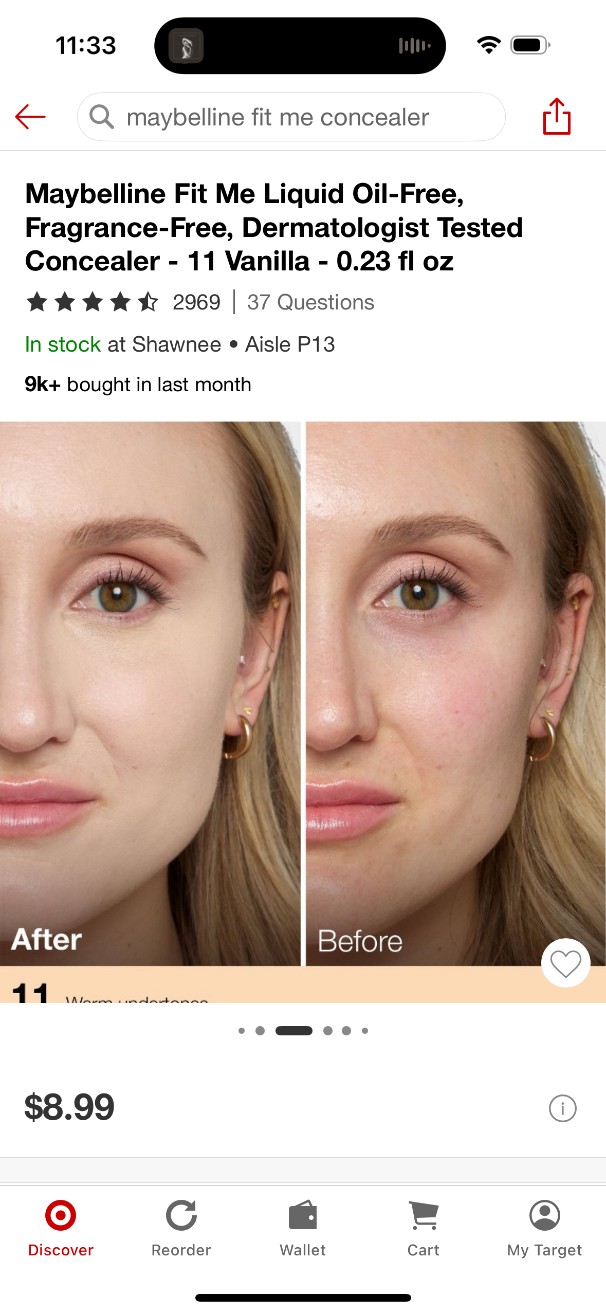 Maybelline Fit Me Liquid Oil-Free, Fragrance-Free, Dermatologist Tested Concealer - 11 Vanilla - 0.23 fl oz