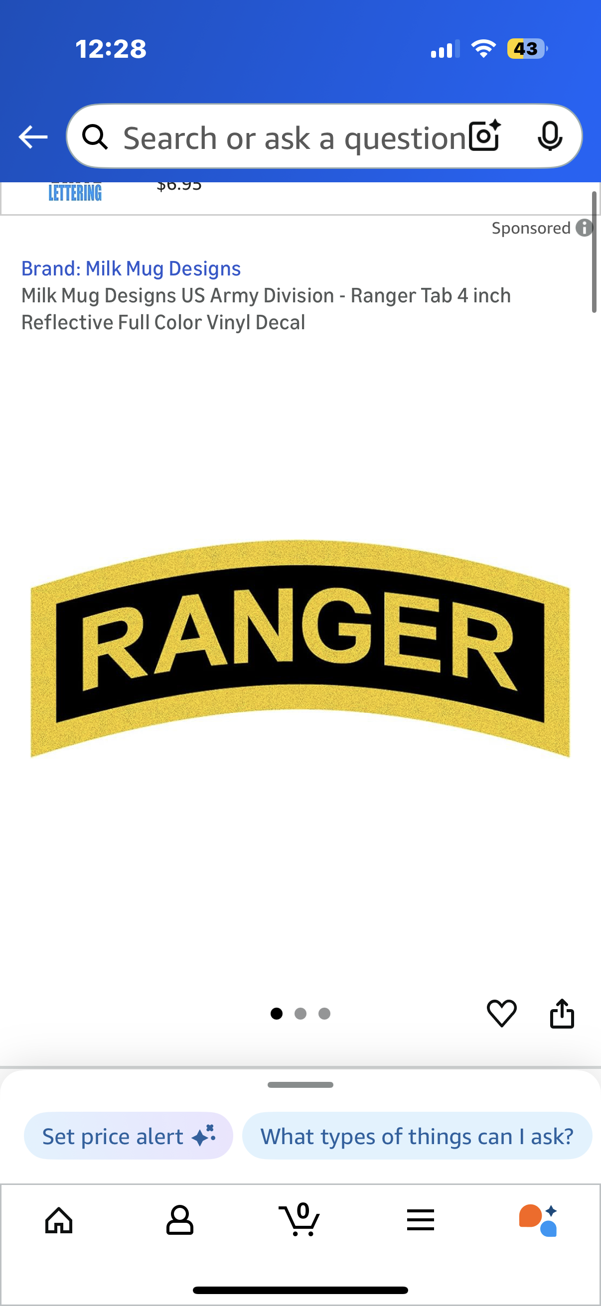 2 packages Milk Mug Designs US Army Division - Ranger Tab 4 inch Reflective Full Color Vinyl Decal