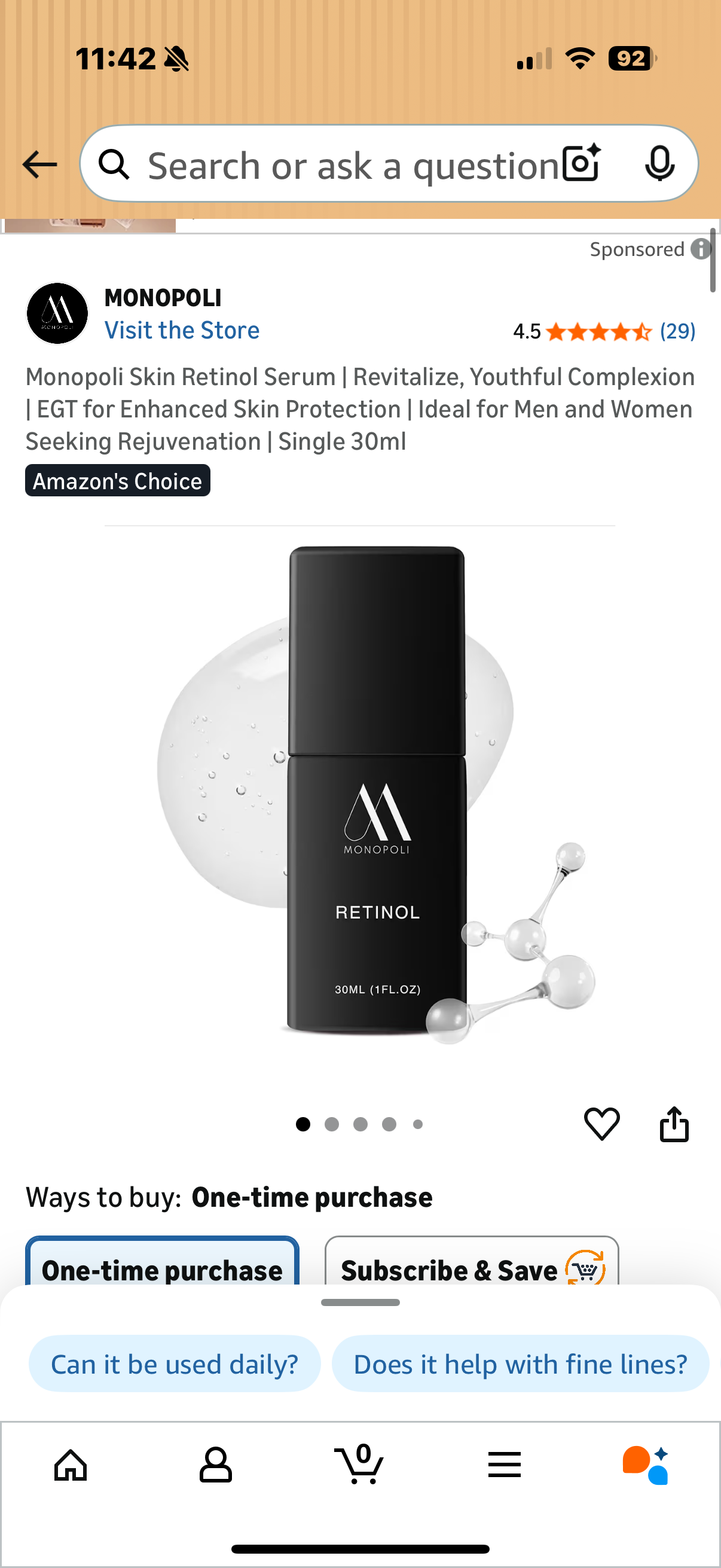 Monopoli Skin Retinol Serum | Revitalize, Youthful Complexion | EGT for Enhanced Skin Protection | Ideal for Men and Women Seeking Rejuvenation | Single 30ml