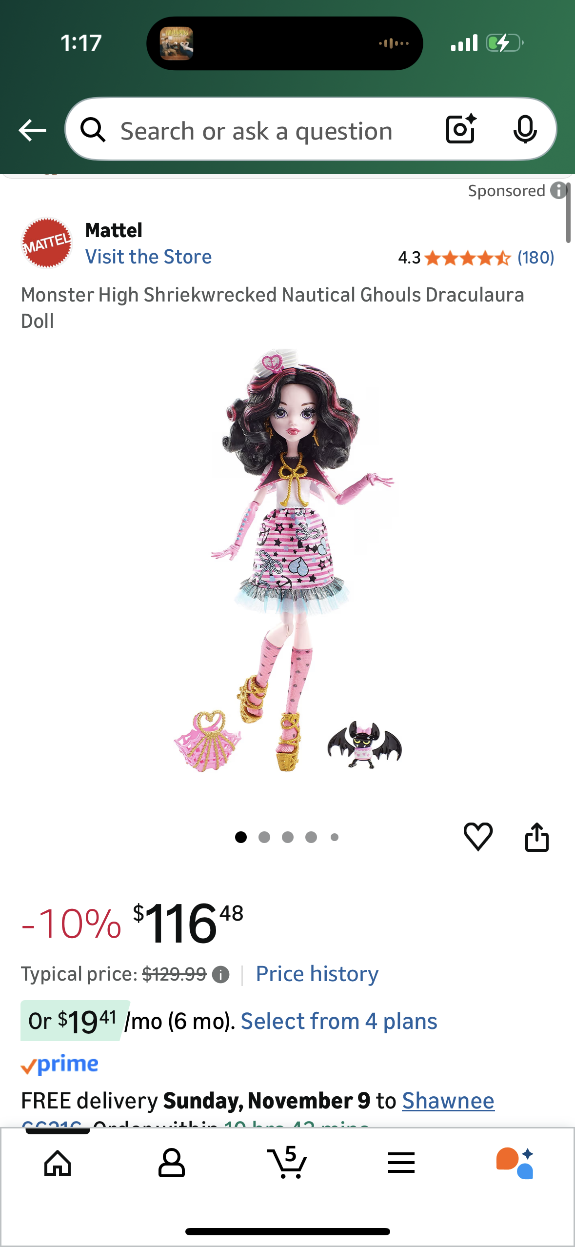 Monster High Shriekwrecked Nautical Ghouls Draculaura Doll