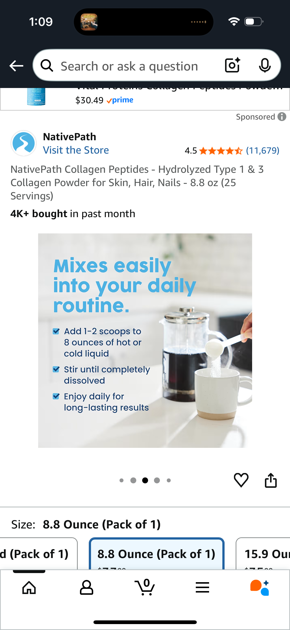 NativePath Collagen Peptides - Hydrolyzed Type 1 & 3 Collagen Powder for Skin, Hair, Nails - 8.8 oz (25 Servings)