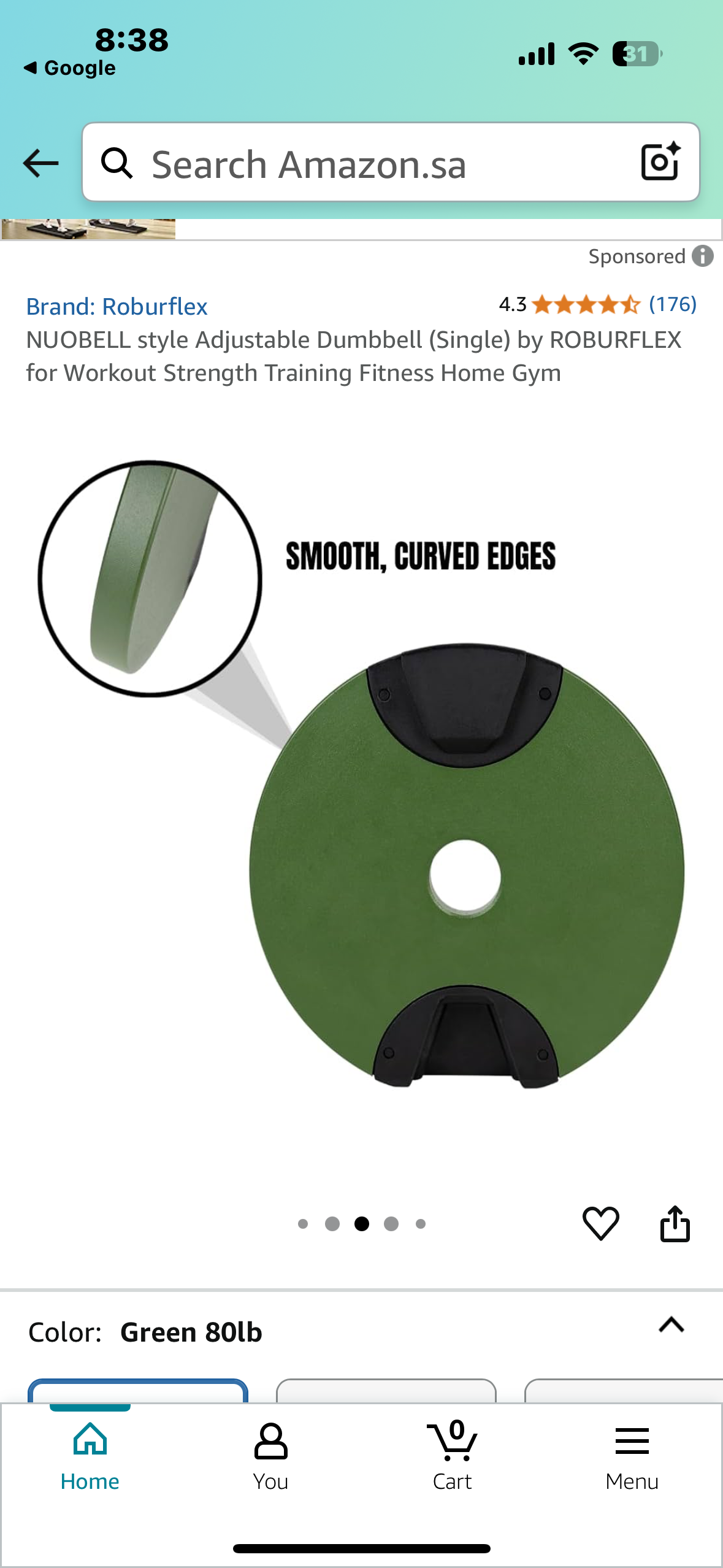 New - Adjustable Dumbbell (Single) by ROBURFLEX, 80 pounds total Weight for Strength Training Fitness, Cast Iron Plates (W529)