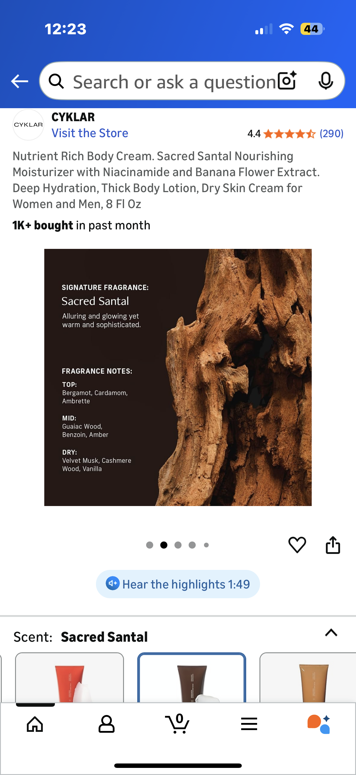 Nutrient Rich Body Cream. Sacred Santal Nourishing Moisturizer with Niacinamide and Banana Flower Extract. Deep Hydration, Thick Body Lotion, Dry Skin Cream for Women and Men, 8 Fl Oz