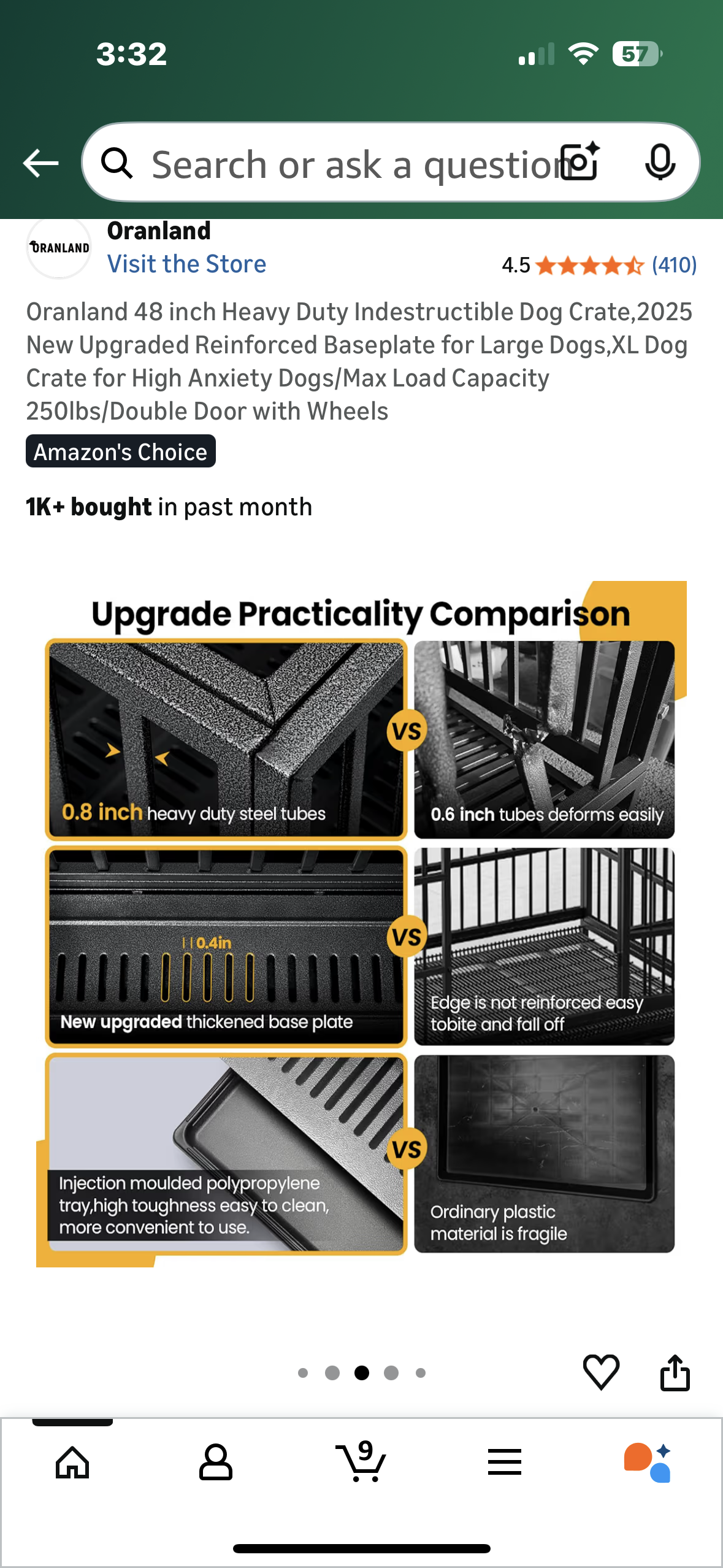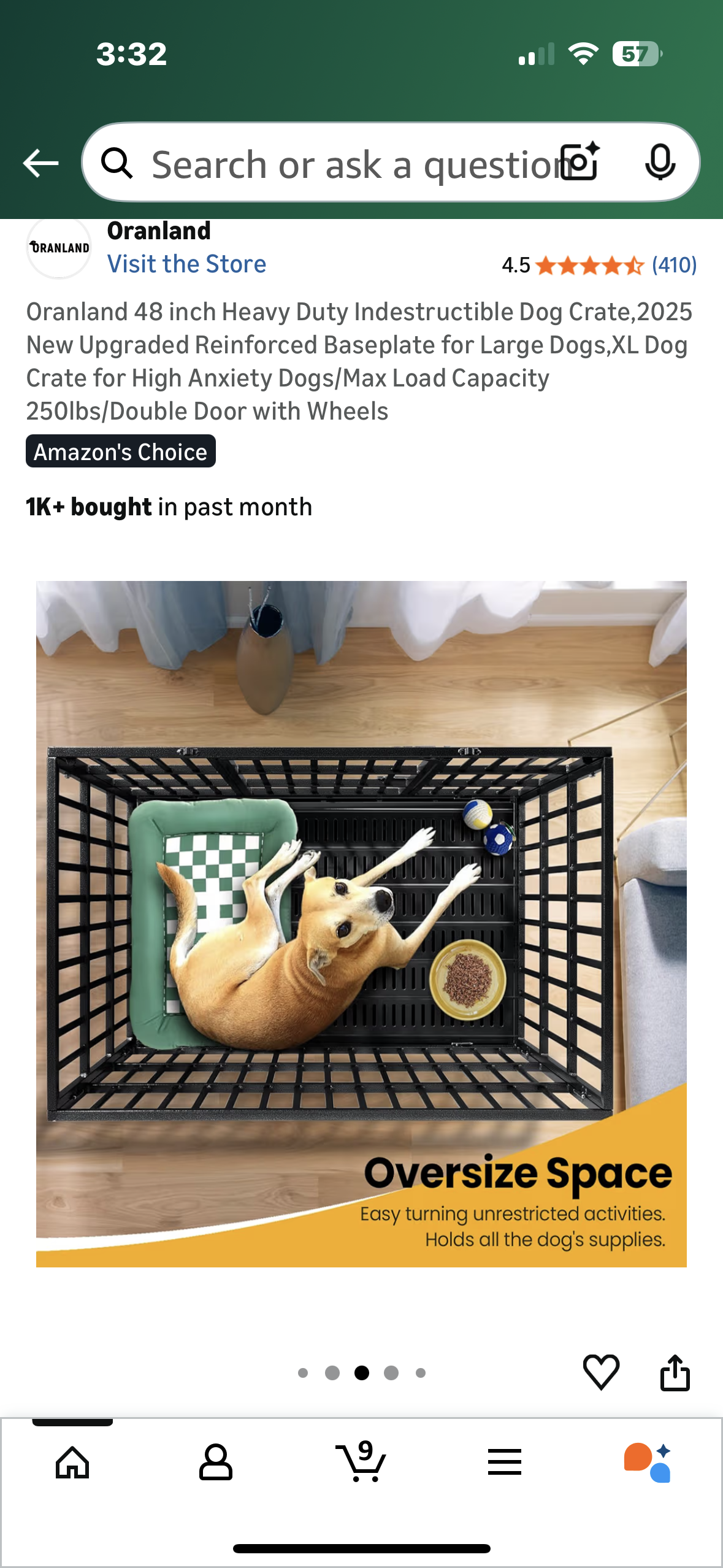Oranland 48 inch Heavy Duty Indestructible Dog Crate,Reinforced for Large Dogs, XL Dog Crate for High Anxiety Dogs/Max Load Capacity 250lbs/Double Door with Wheels (R729)