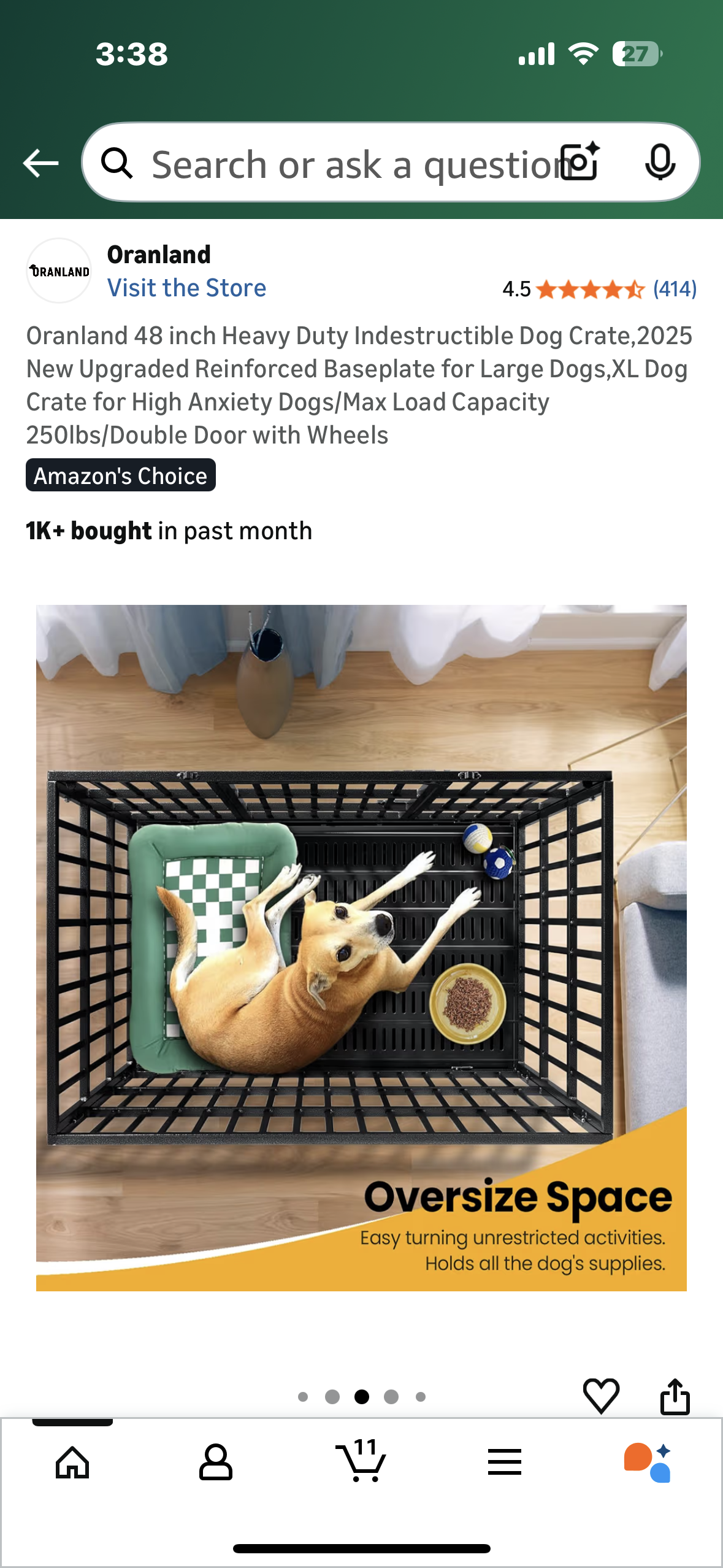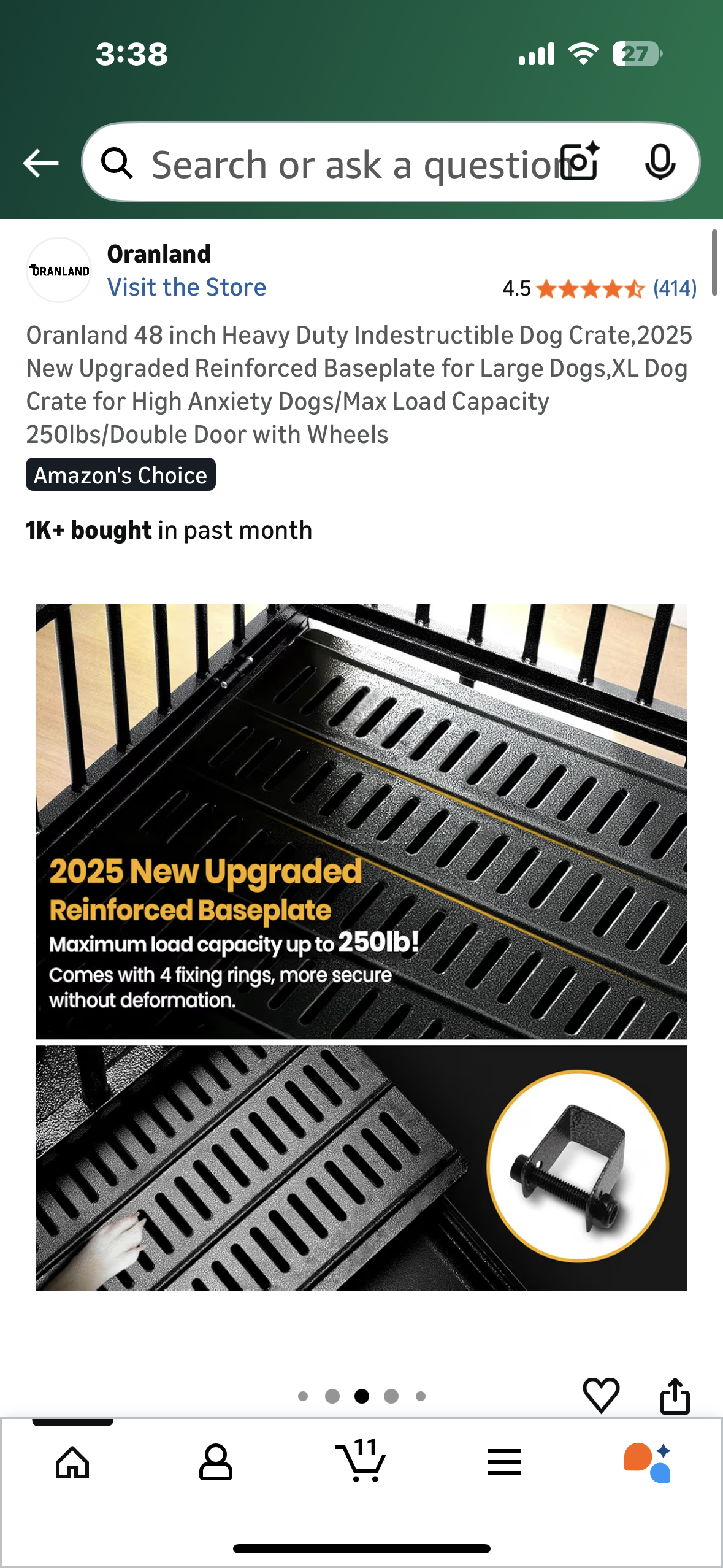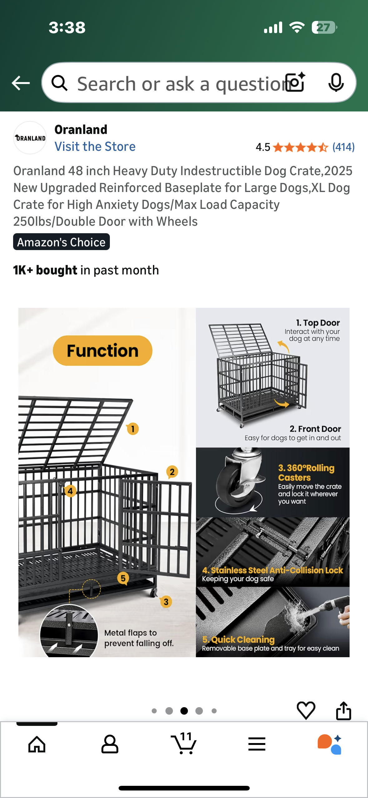 Oranland 48 inch Heavy Duty Indestructible Dog Crate,Reinforced Baseplate for Large Dogs,XL Dog Crate for High Anxiety Dogs/Max Load Capacity 250lbs/Double Door with Wheels (R731)