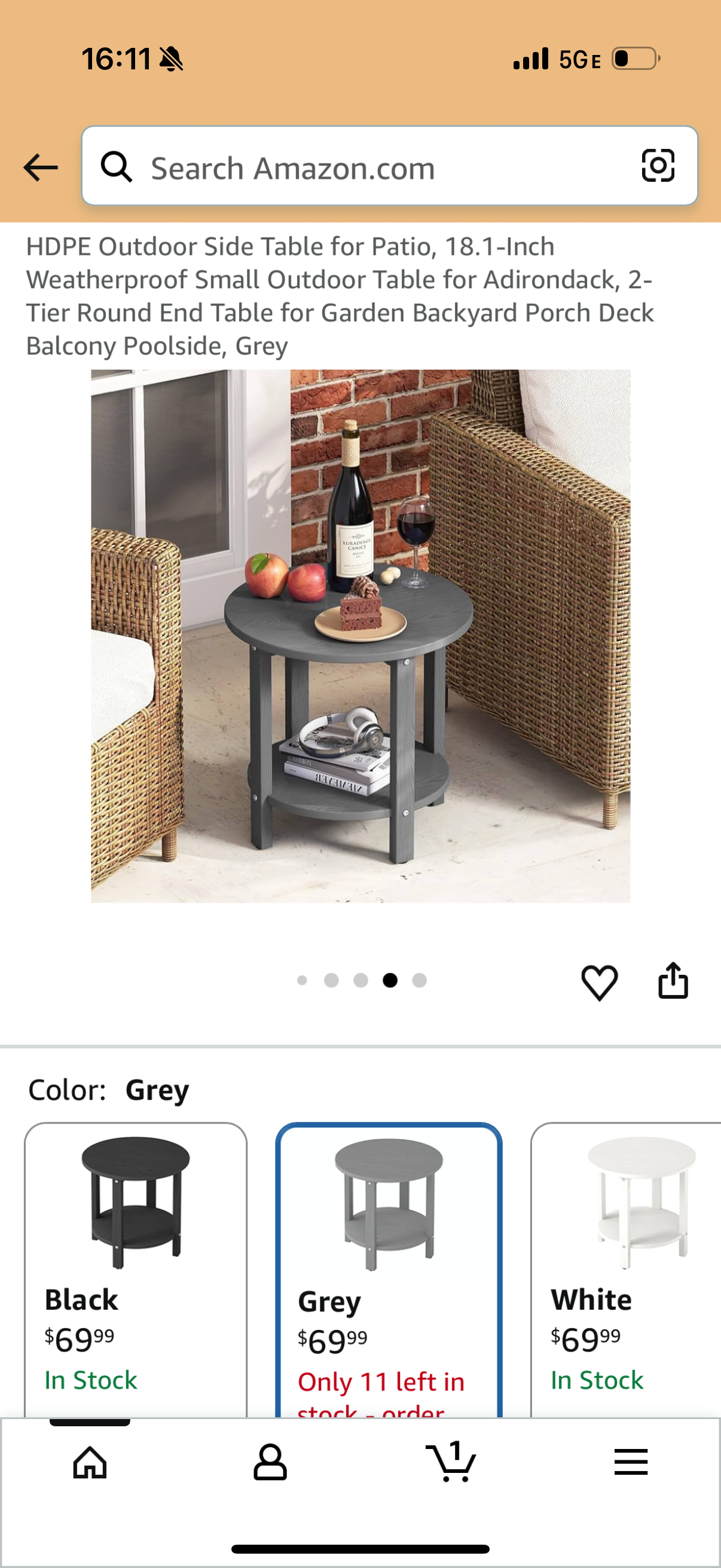 Side Table for Patio, 18.1-Inch Weatherproof Small Outdoor Table for Adirondack, 2-Tier Round End Table for Garden Backyard Porch Deck Balcony Poolside, Grey (L1168)