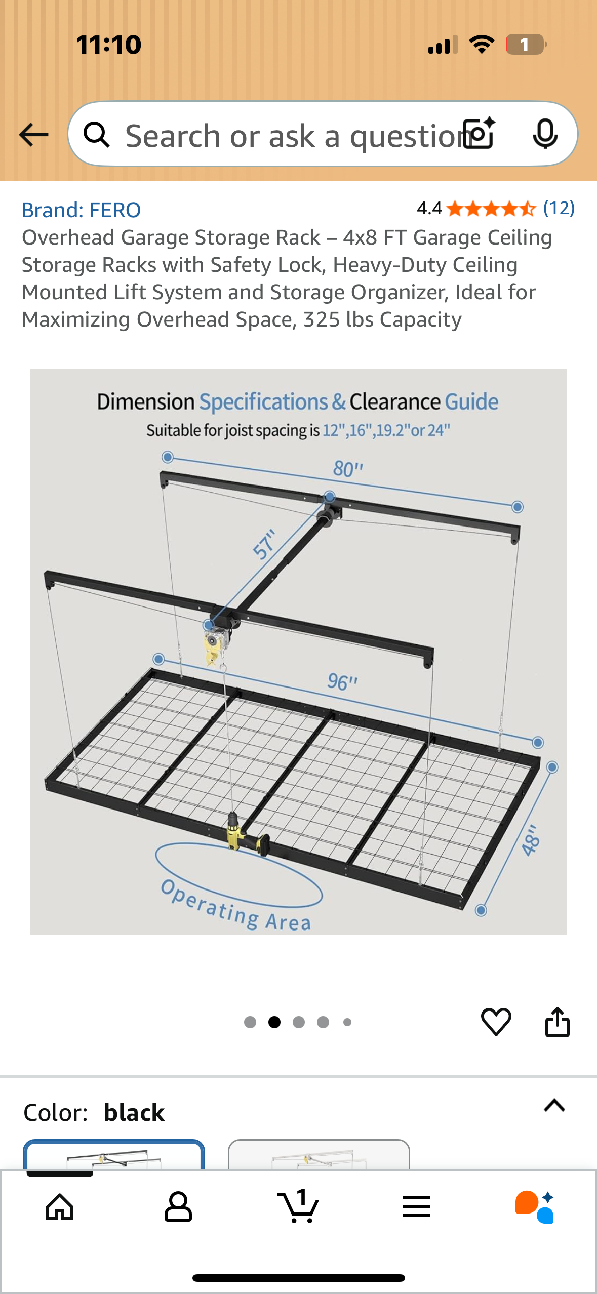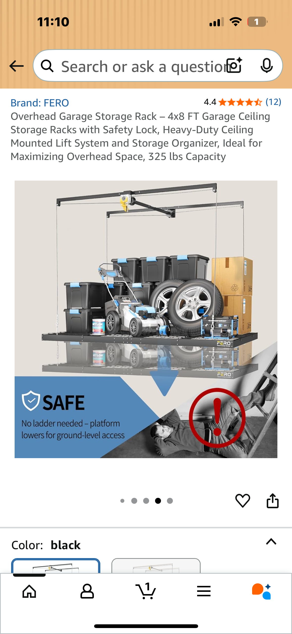 Overhead Garage Storage Rack – 4x8 FT Garage Ceiling Storage Racks with Safety Lock, Heavy-Duty Ceiling Mounted Lift System and Storage Organizer, Ideal for Maximizing Overhead Space, 325 lbs Capacity (G871)