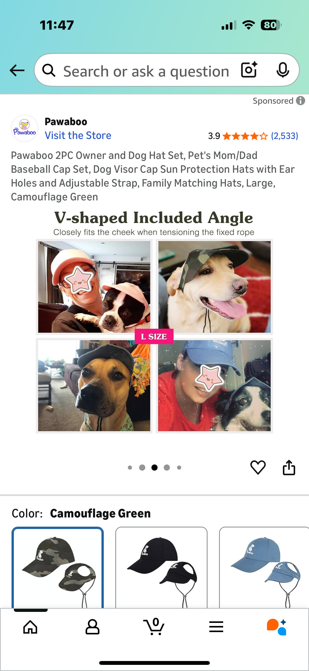 Pawaboo 2PC Owner and Dog Hat Set, Pet's Mom/Dad Baseball Cap Set, Dog Visor Cap Sun Protection Hats with Ear Holes and Adjustable Strap, Family Matching Hats, Large, Camouflage Green