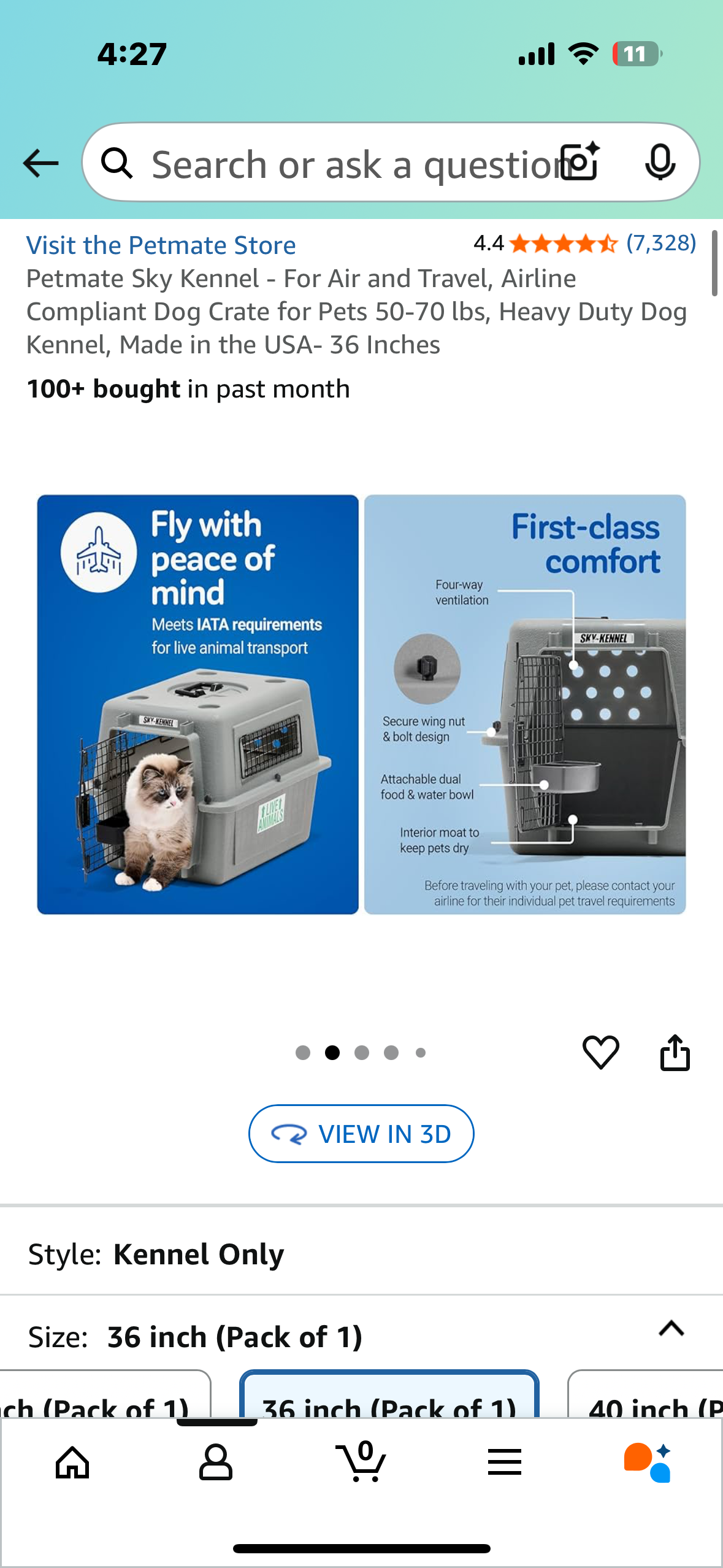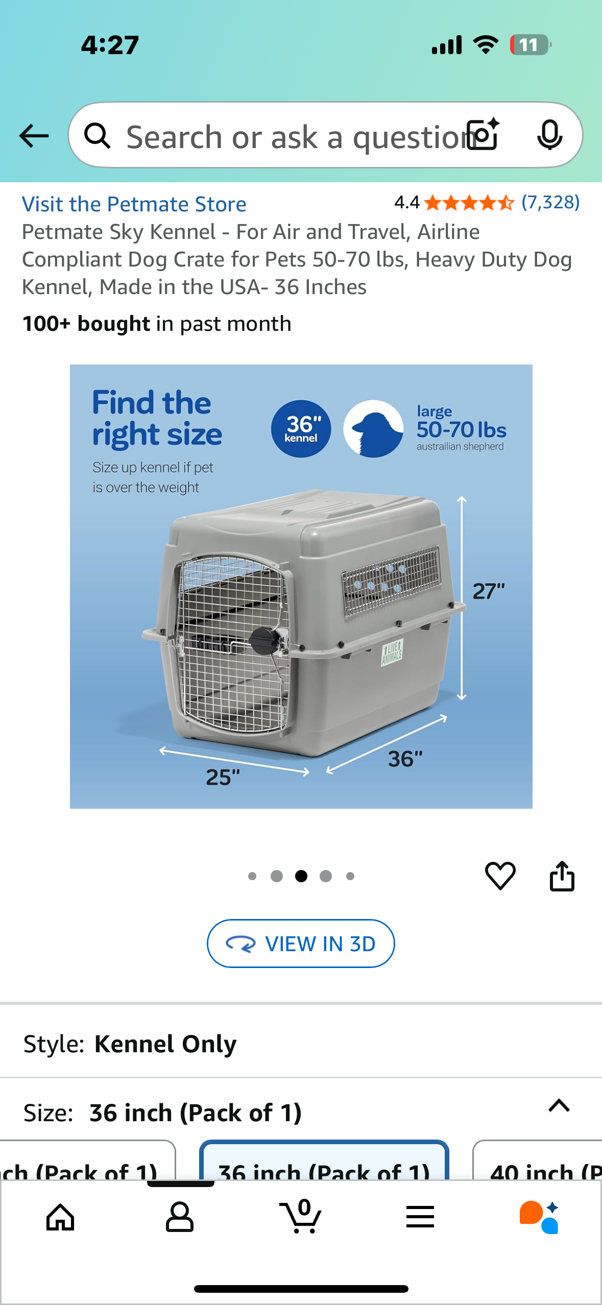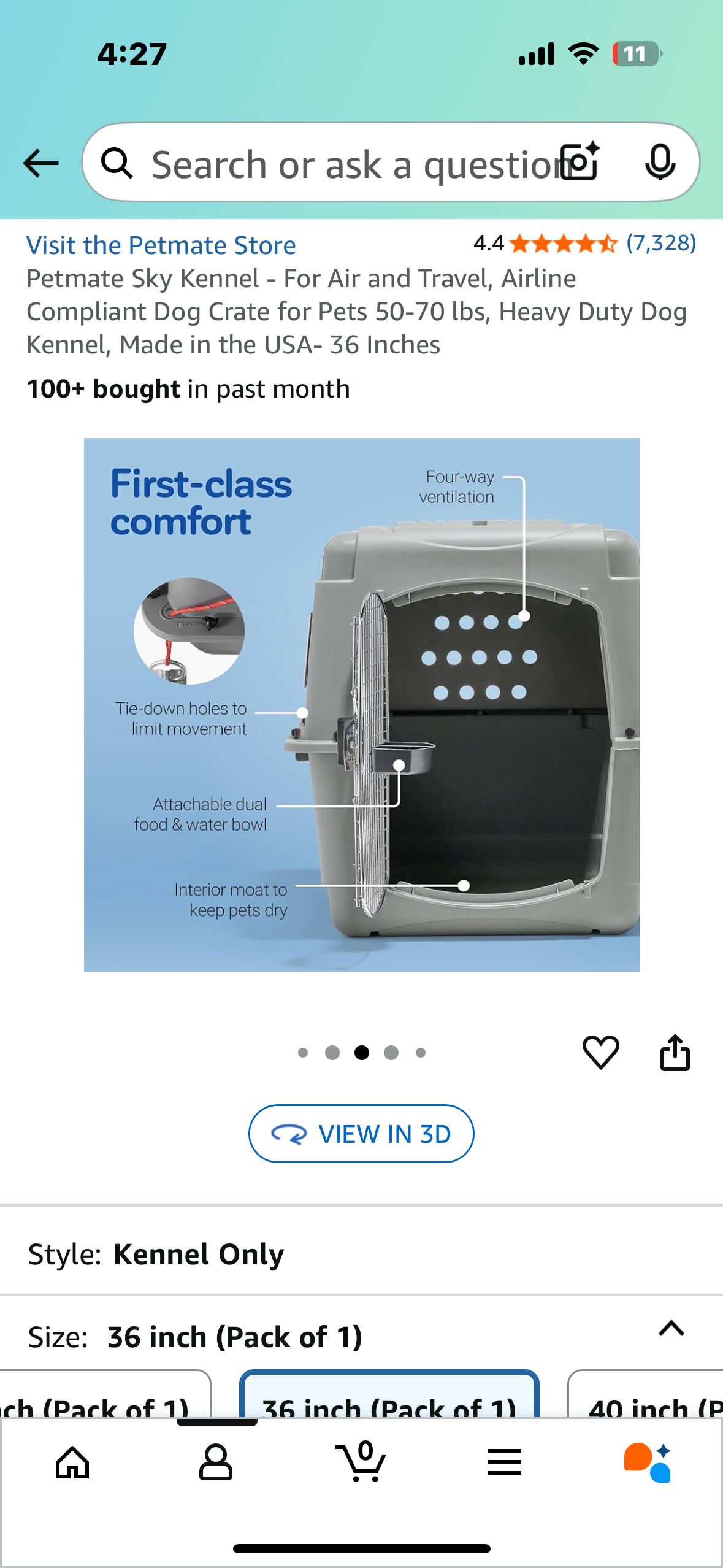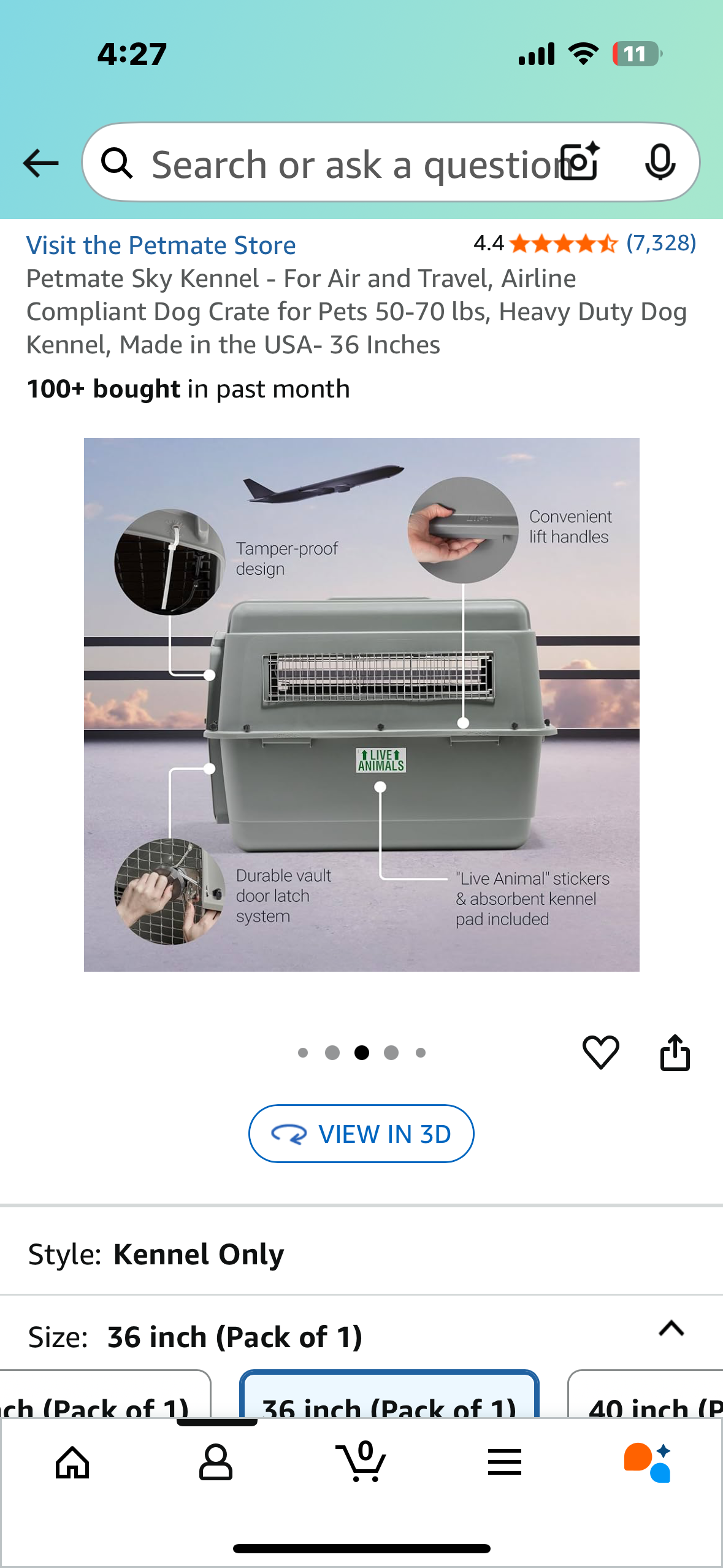 Petmate Sky Kennel - For Air and Travel, Airline Compliant Dog Crate for Pets 50-70 lbs, Heavy Duty Dog Kennel, Made in the USA- 36 Inches (R679)