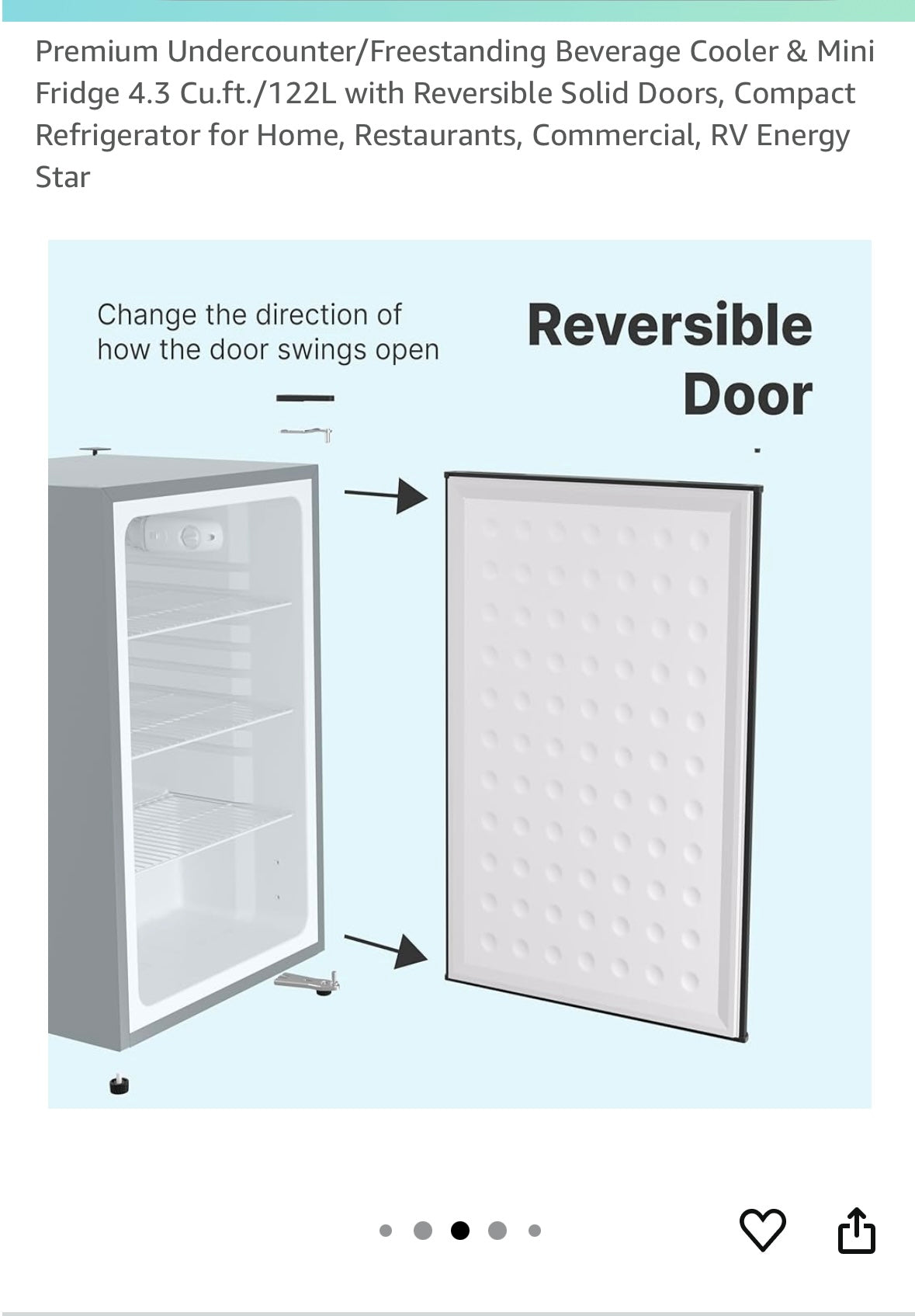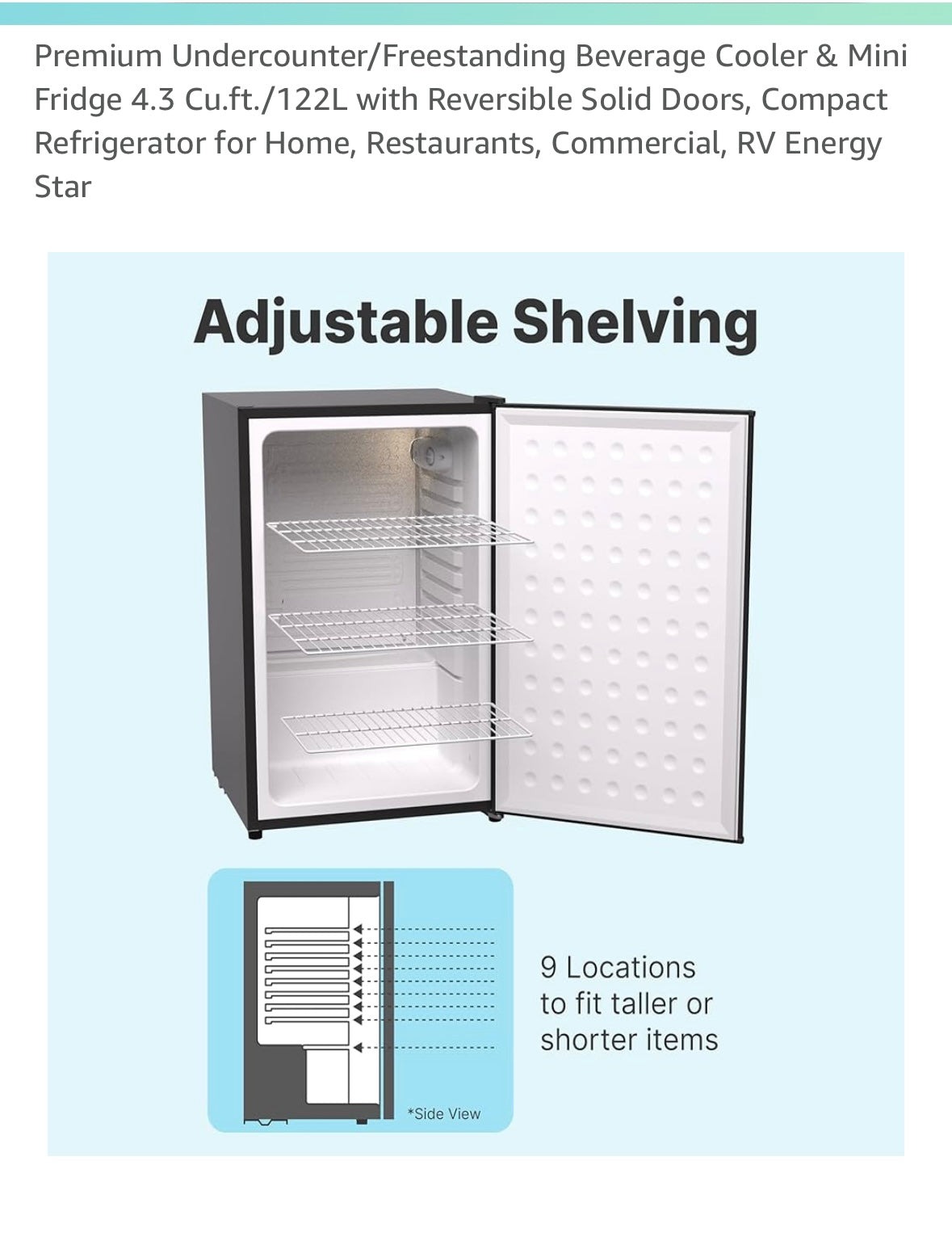 Premium Undercounter/Freestanding Beverage Cooler & Mini Fridge, 4.3 Cu.ft./122L with Reversible Solid Doors, Compact Refrigerator for Home, Restaurants, Commercial (R682)
