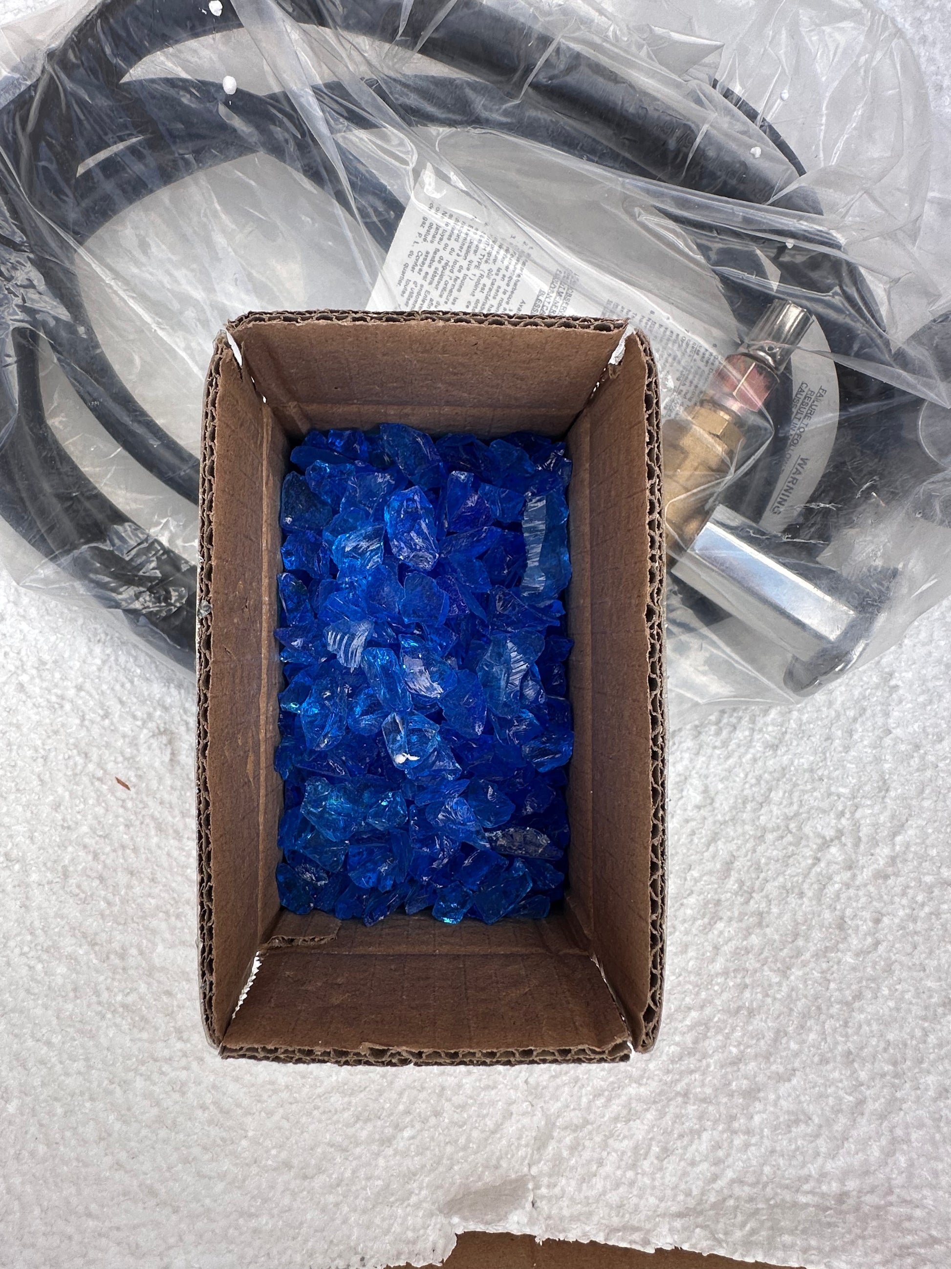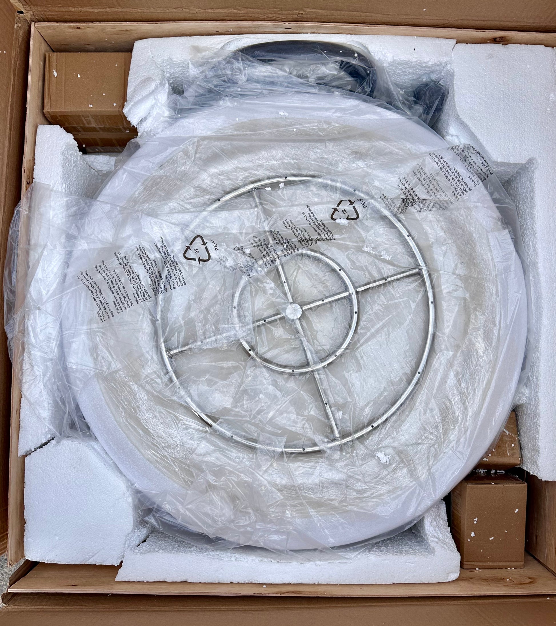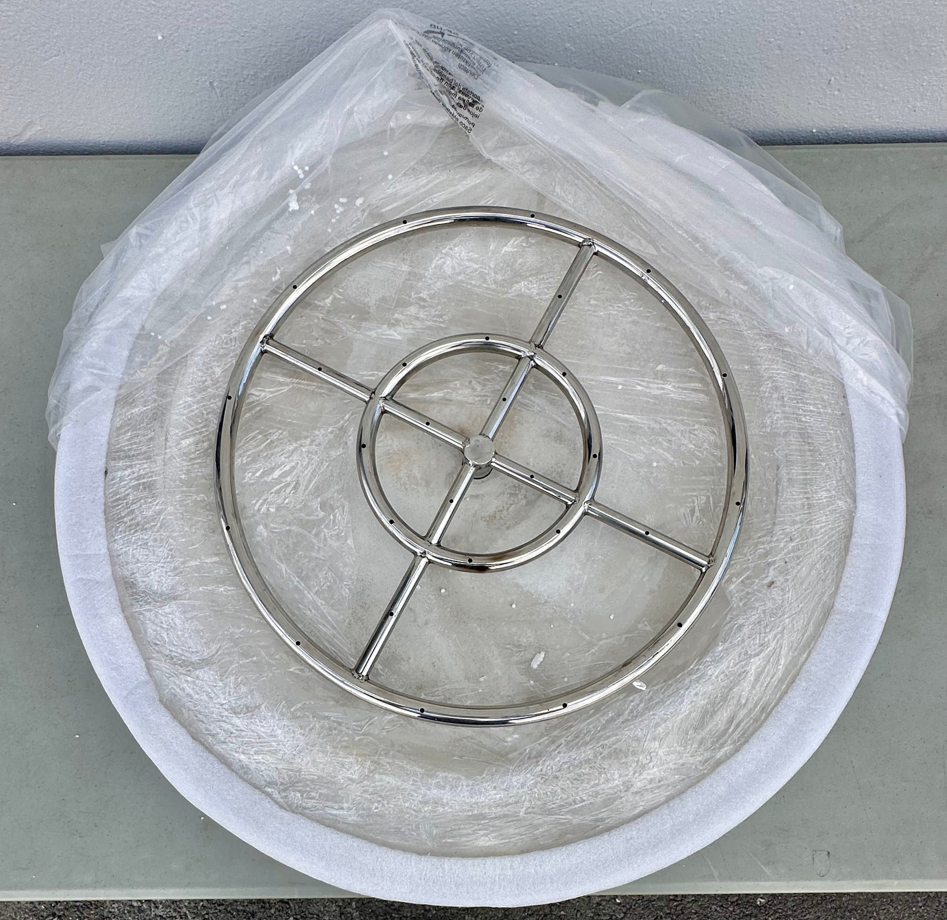 PONDO Versatile 26-inch Round Cement Gas Fire Pit Kit with Blue Fire Glass, Natural Light Yellow Organic Finish Enchanting Fireplace for Garden Courtyard, Patio, Camping, Outdoor Heating, Bonfire (R682)