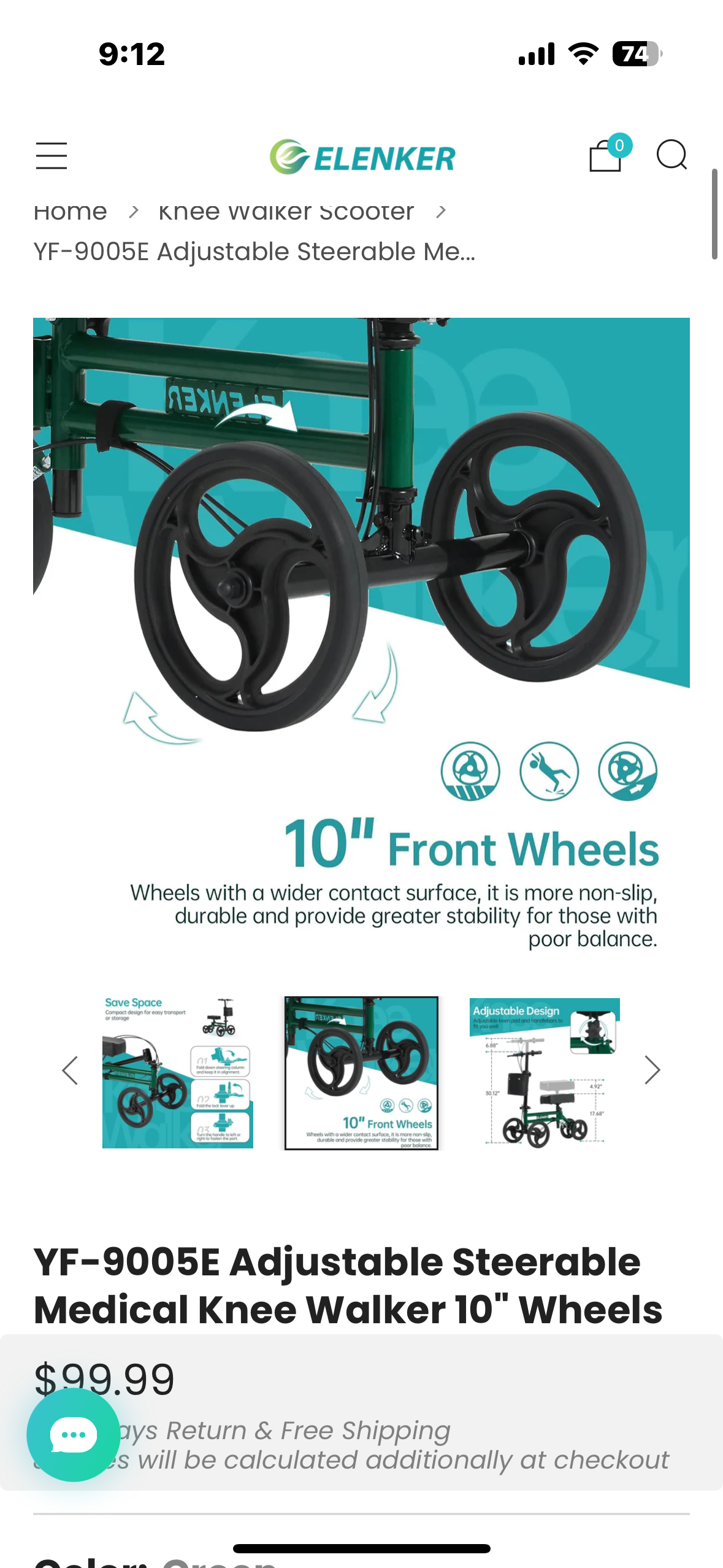 ELENKER Steerable Knee Walker Deluxe Scooter for Foot Injuries, Compact, Crutches Alternative (R688)