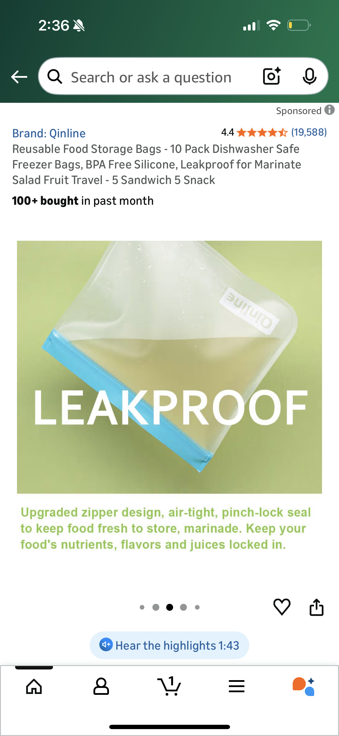 Reusable Food Storage Bags - 10 Pack Dishwasher Safe Freezer Bags, BPA Free Silicone, Leakproof for Marinate Salad Fruit Travel - 5 Sandwich 5 Snack