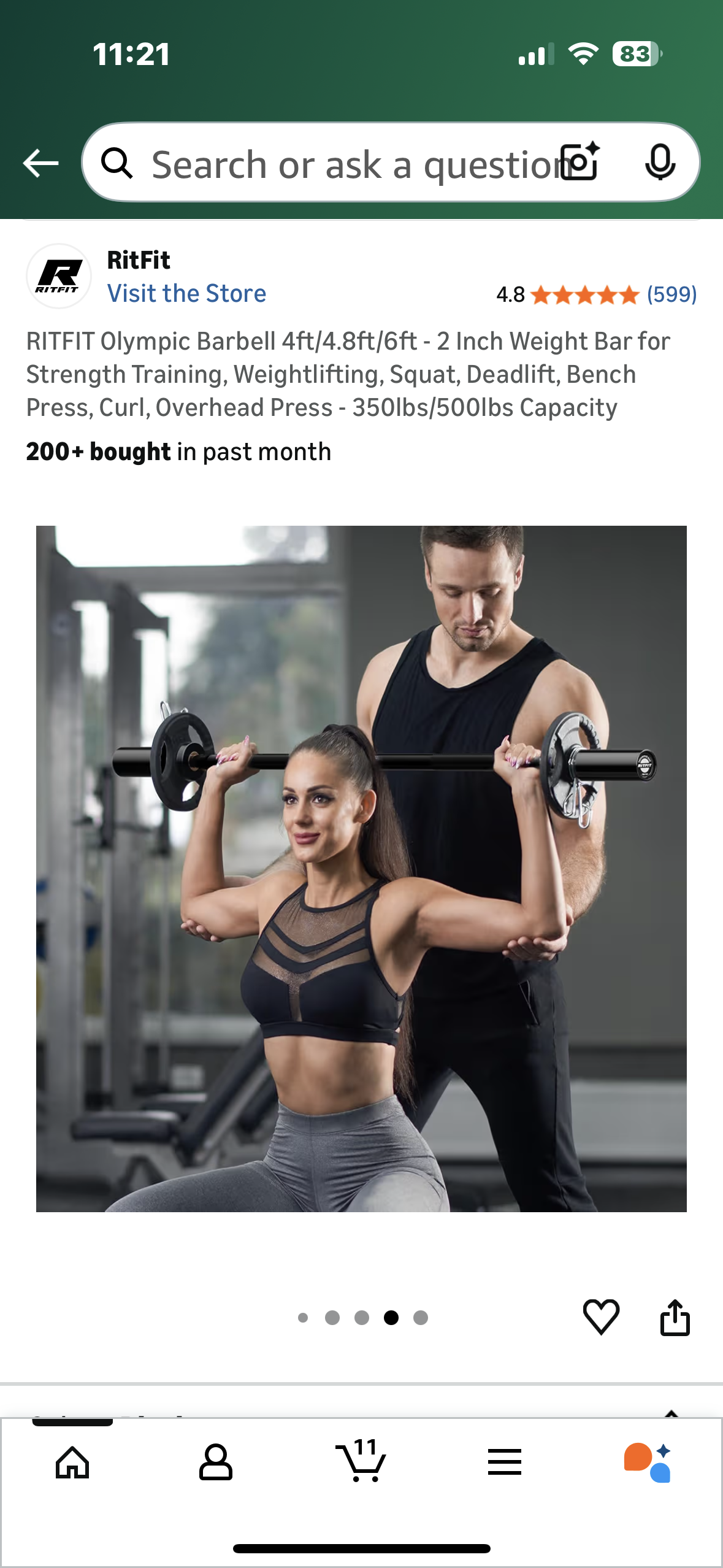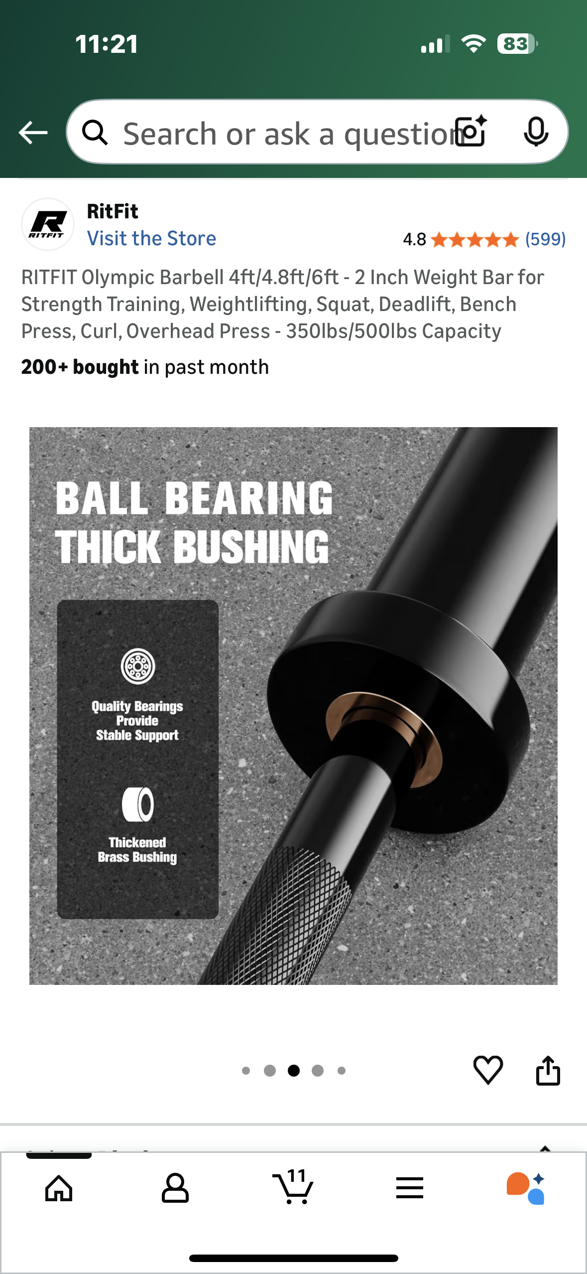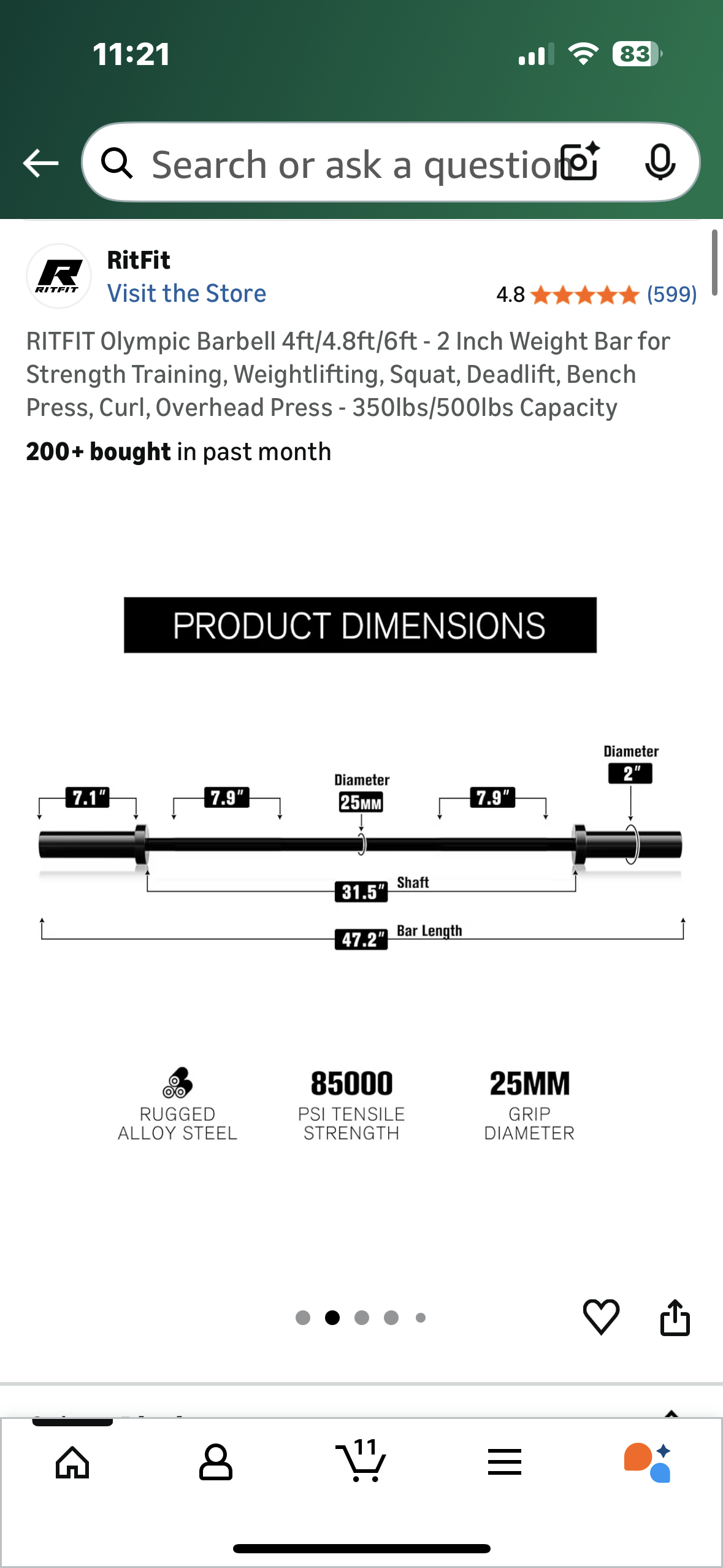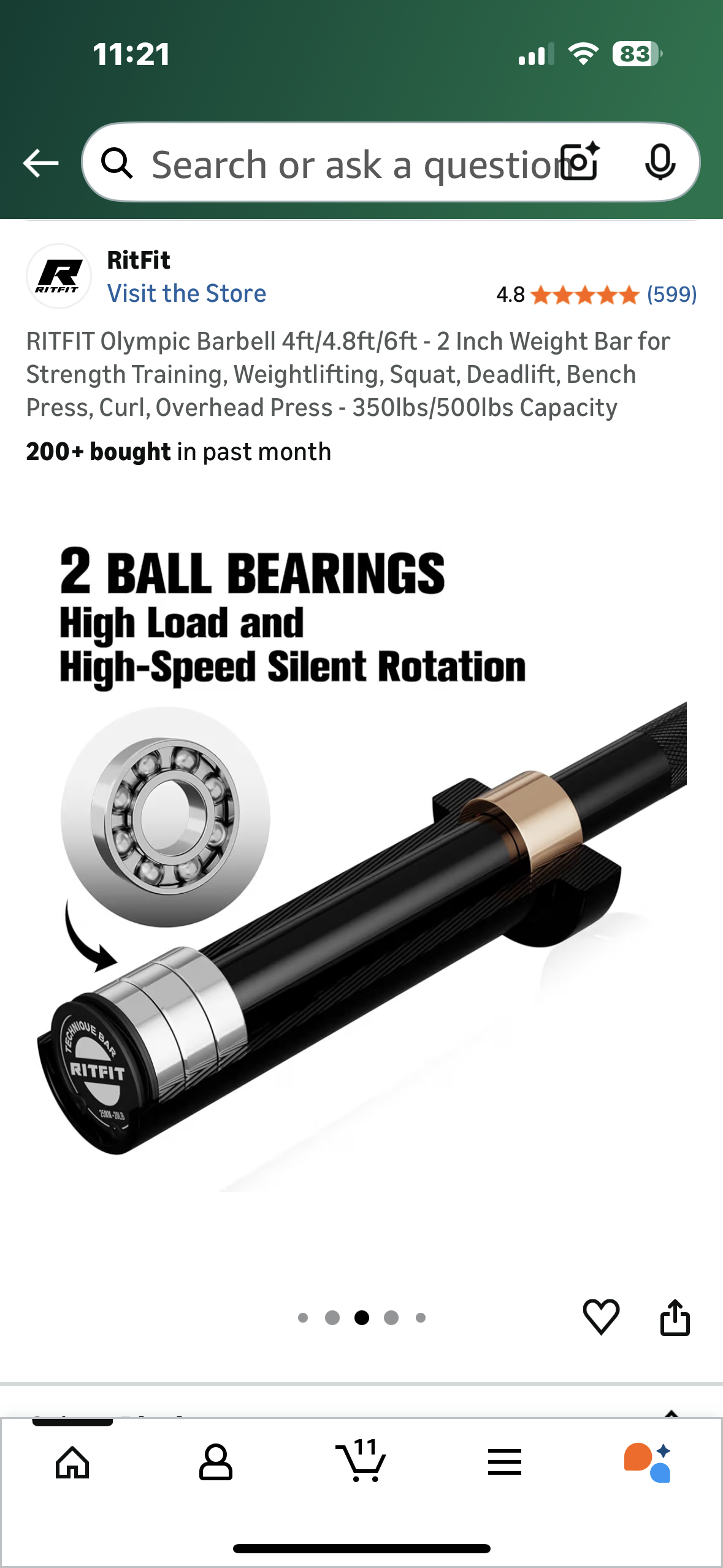 RITFIT Olympic Barbell 4ft- 2 Inch Weight Bar for Strength Training, Weightlifting, Squat, Deadlift, Bench Press, Curl, Overhead Press - 350lbs/500lbs Capacity (W541)