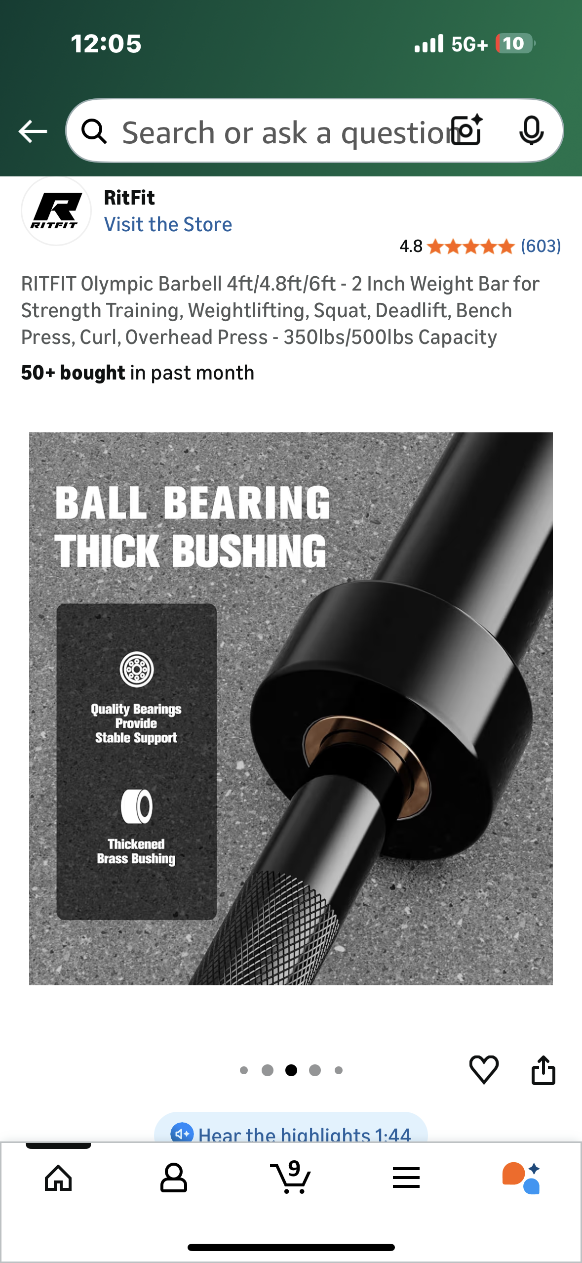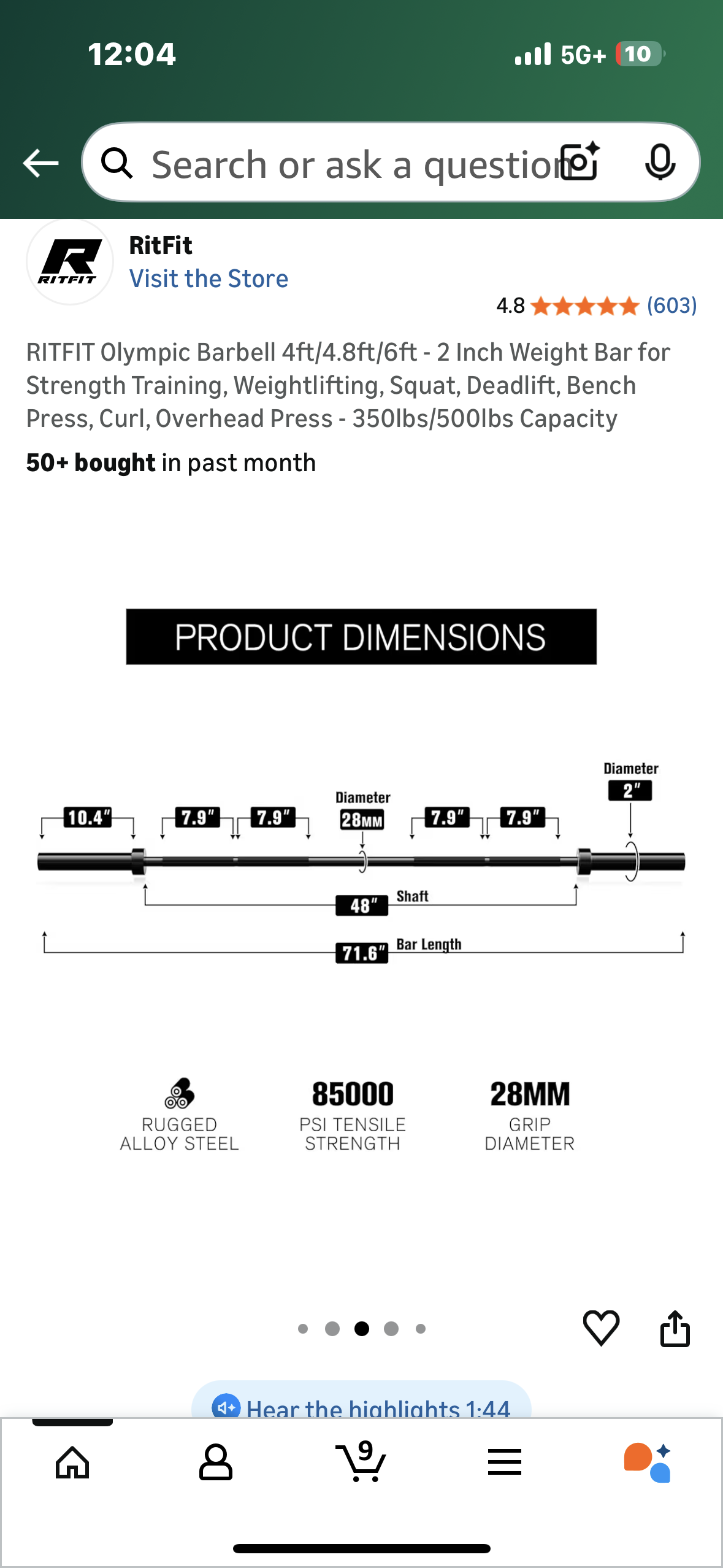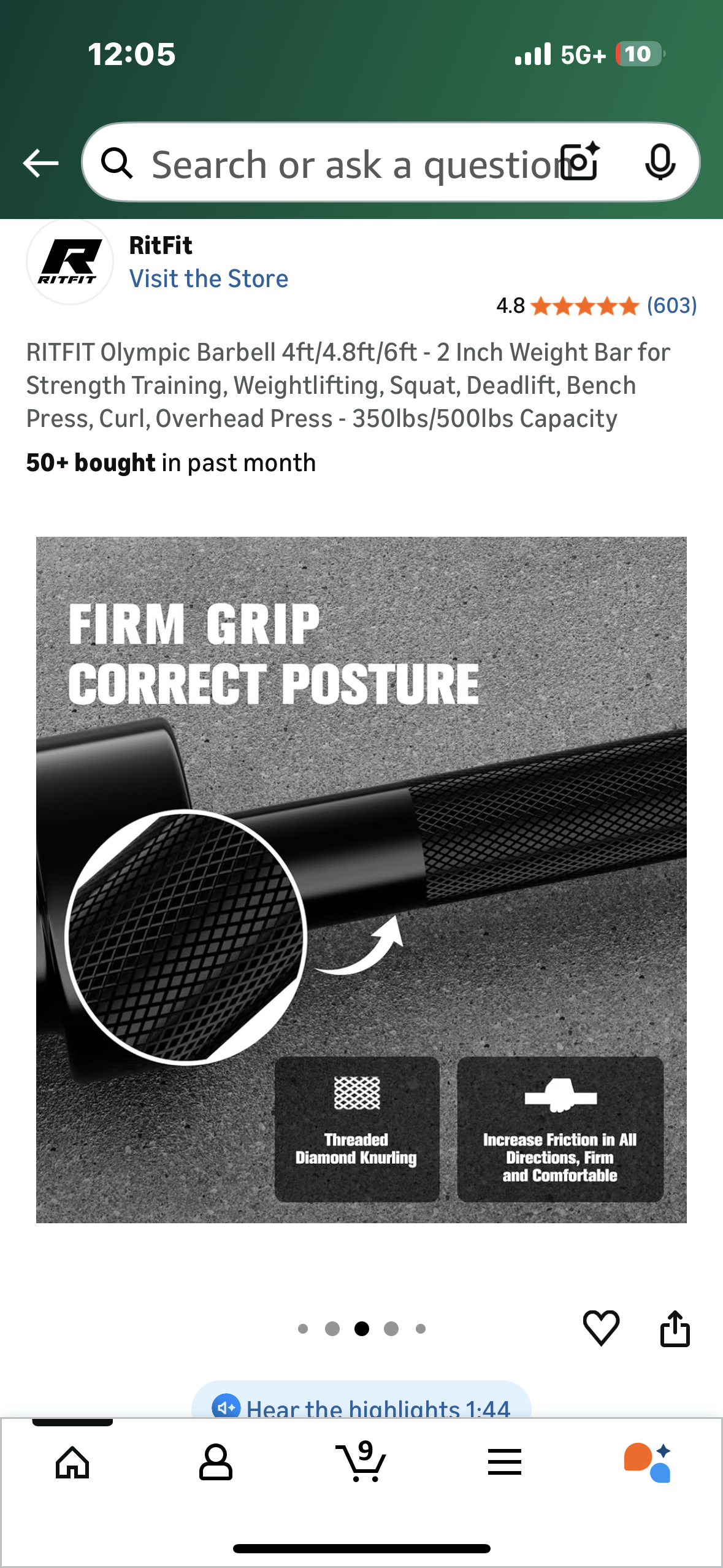 RITFIT Olympic Barbell 6ft - 2 Inch Weight Bar for Strength Training, Weightlifting, Squat, Deadlift, Bench Press, Curl, Overhead Press - 350lbs/500lbs Capacity (W546)
