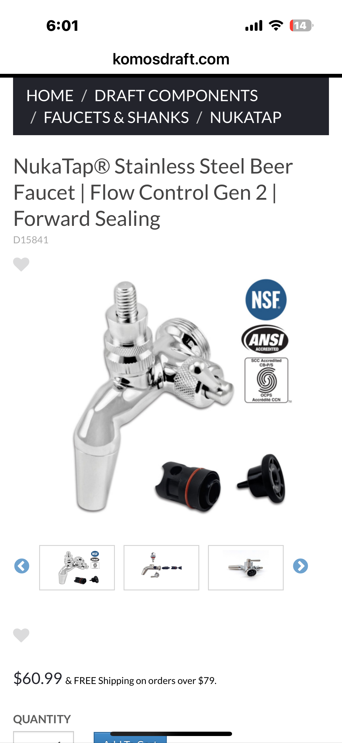 (1) KOMOS Stainless Steel Draft Tower