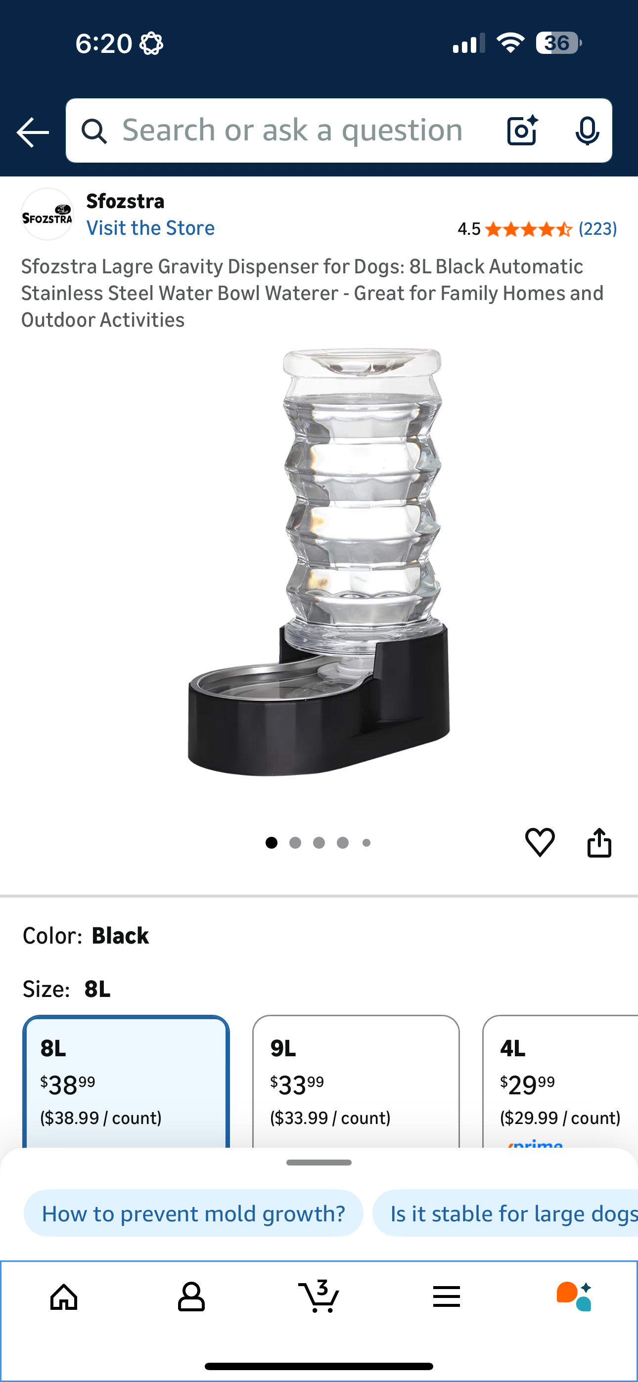 Sfozstra Lagre Gravity Dispenser for Dogs: 8L Black Automatic Stainless Steel Water Bowl Waterer - Great for Family Homes and Outdoor Activities