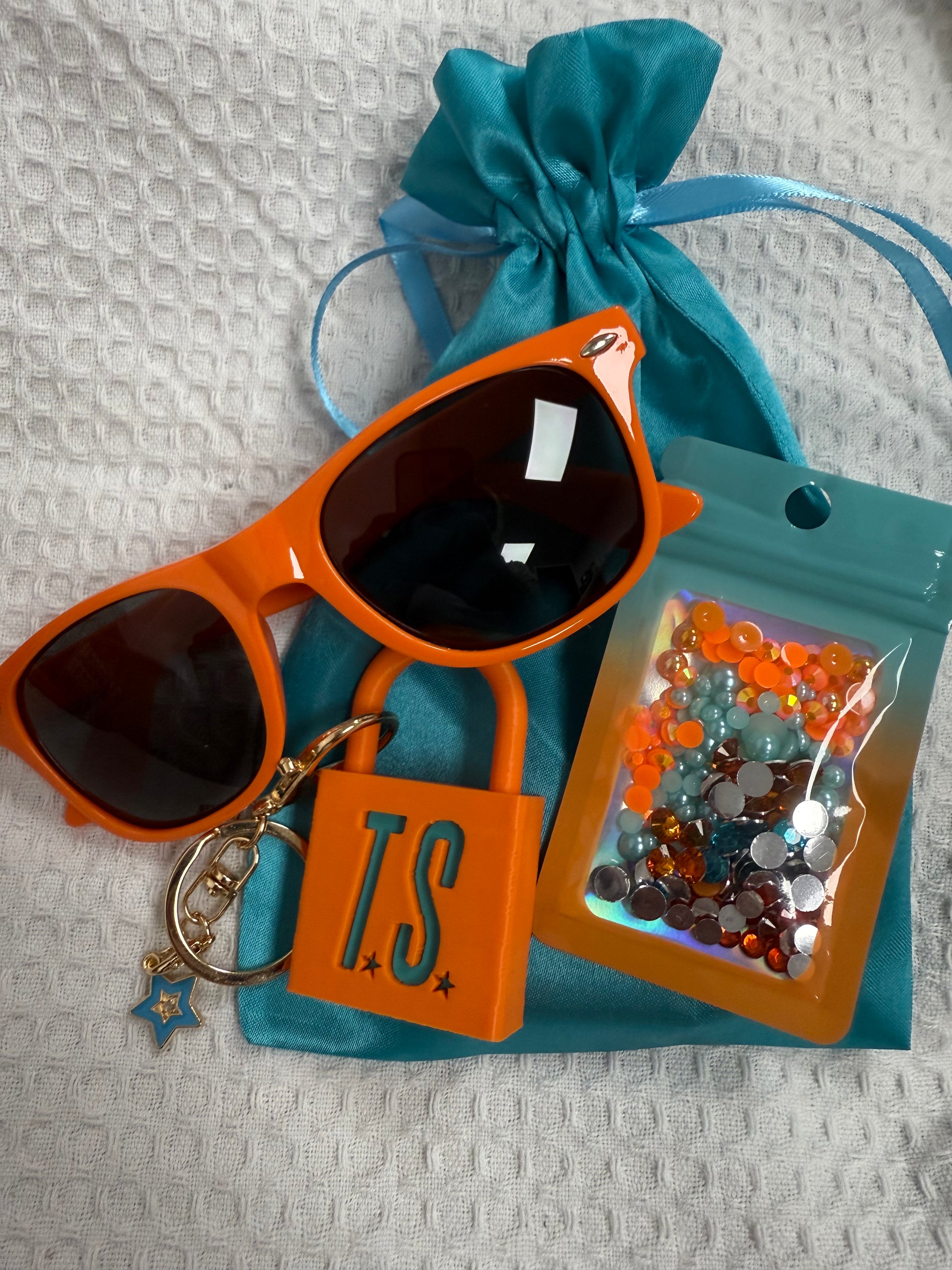 Make your glasses sparkle, complete with a TS lock and purse charm!