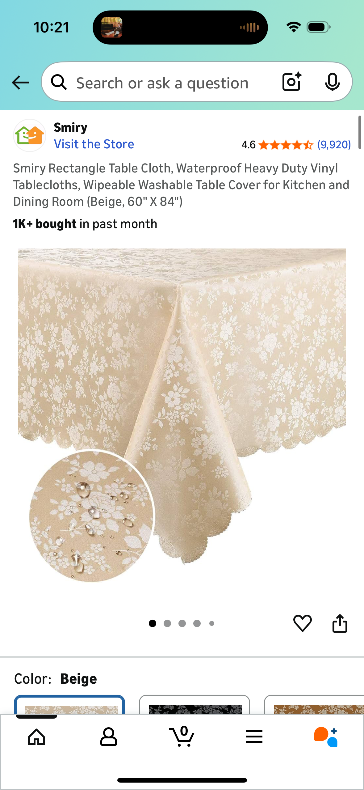 Smiry Rectangle Table Cloth, Waterproof Heavy Duty Vinyl Tablecloths, Wipeable Washable Table Cover for Kitchen and Dining Room (Beige, 60" X 84")