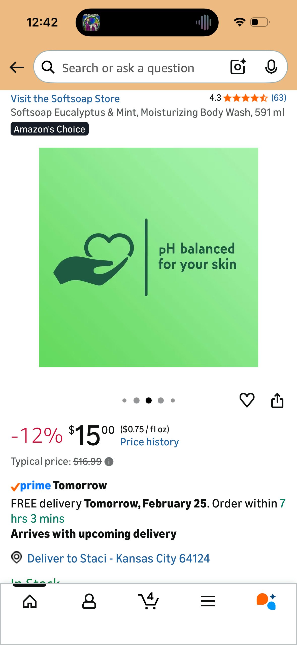 Softsoap Eucalyptus & Mint, Moisturizing Body Wash, 591 ml
