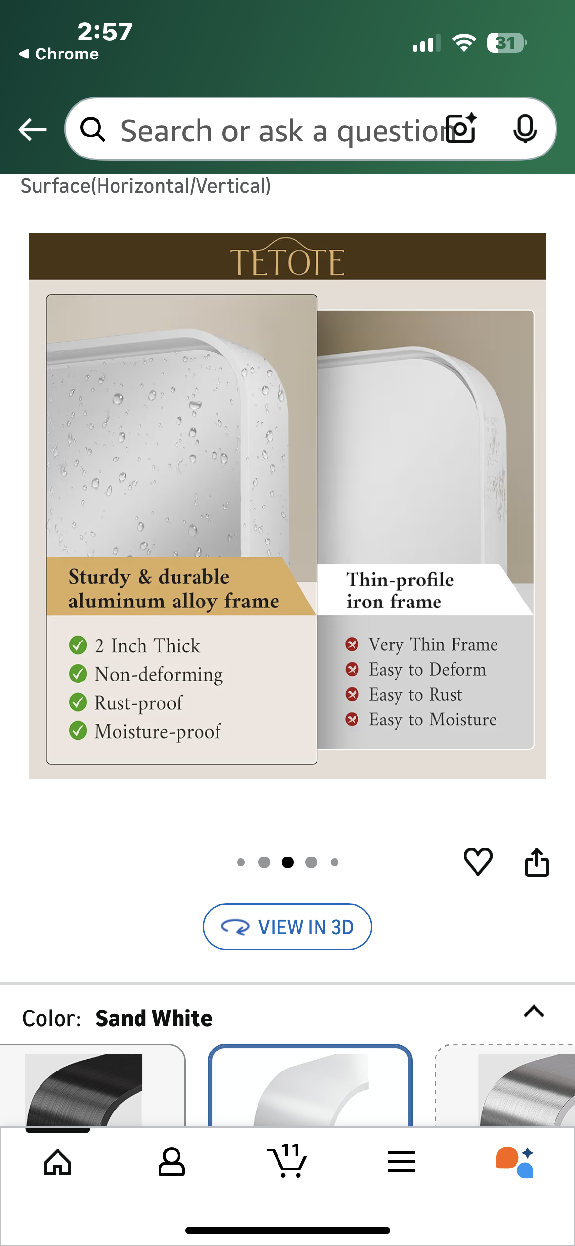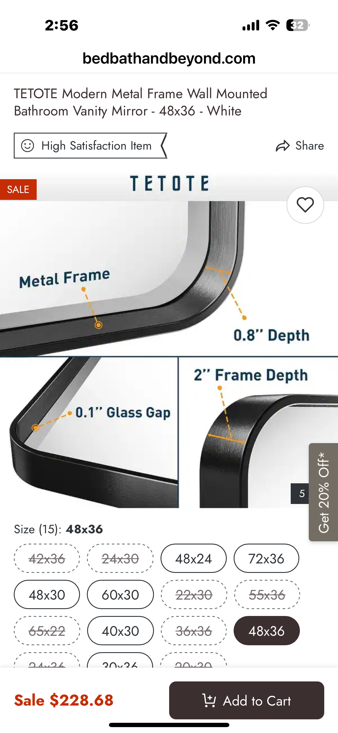 TETOTE Modern Metal Frame Wall Mounted Bathroom Vanity Mirror - 48x36 - White (M447)