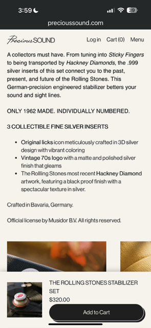 THE ROLLING STONES STABILIZER SET RECORD STABILIZER WITH THREE PURE SILVER INSERTS