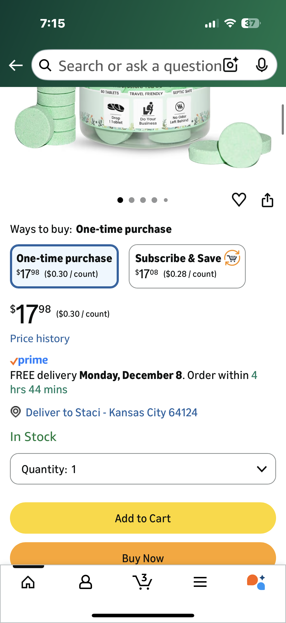 Toilet Deodorizer Tablets – Drop One In and Go – 60 Count Citrus Scent – Odor Elimination for Bathroom – Replaces Toilet Spray – Long Lasting – Fresh Bowl Freshener