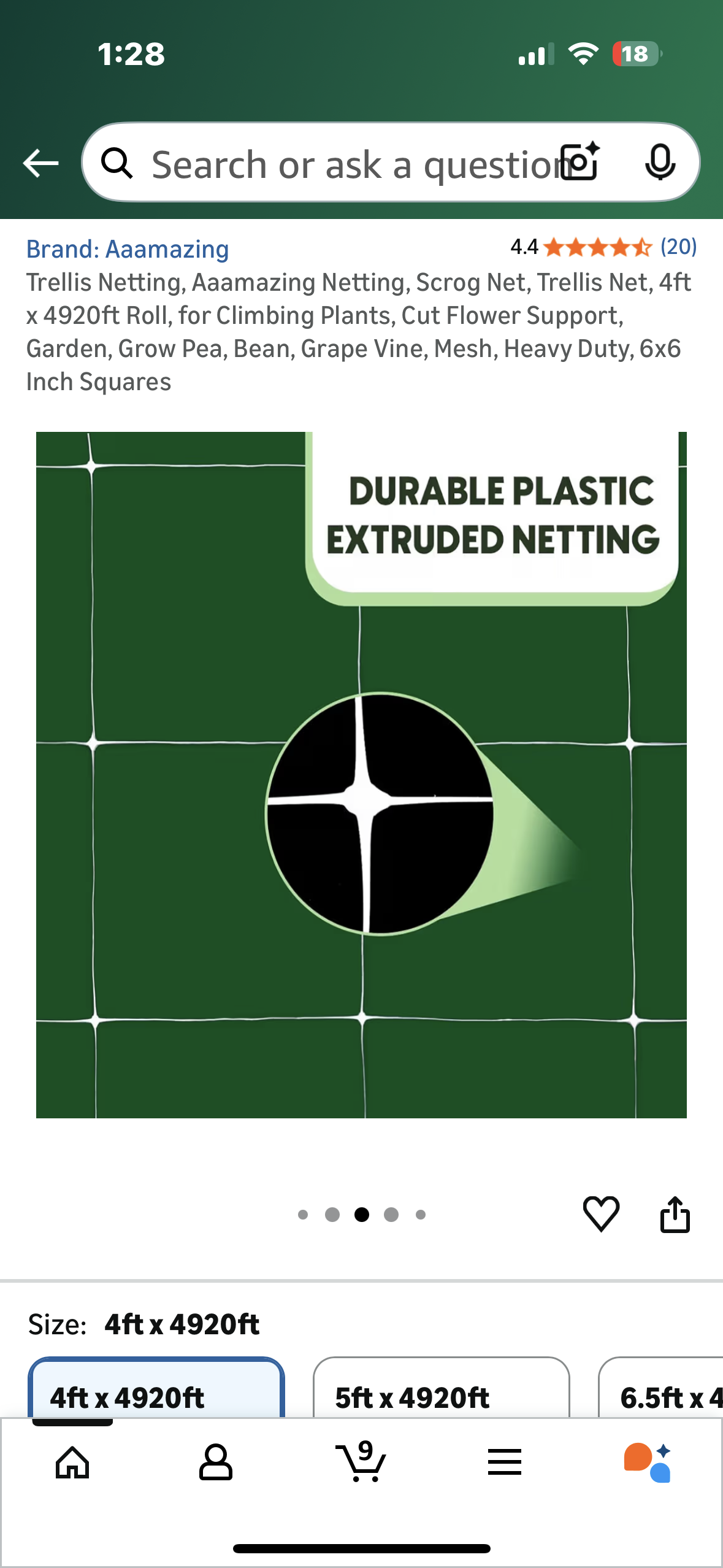 Trellis Netting, Aaamazing Netting, 4ft x 4920ft Roll, for Climbing Plants, Cut Flower Support, Garden, Pea, Bean, Grape Vine, Mesh, Heavy Duty, 6x6 Inch Squares (G916)