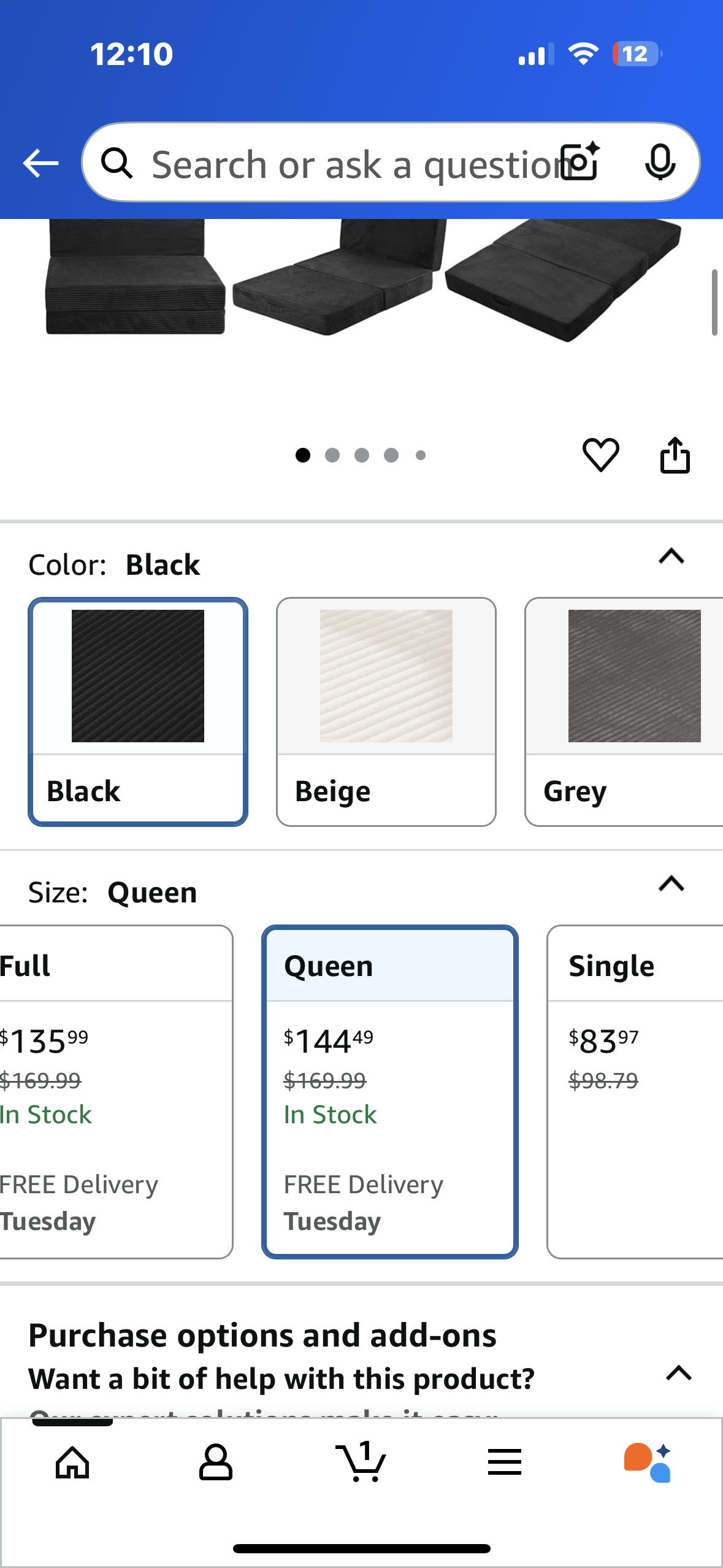 Tri-Fold Mattress Queen Size - Foldable Futon Sofa Bed with Removable Washable Cover, Folding Memory Foam Futon Mattress | Non-Slip Bottom & Carry Handles for Guest, Camping, Dorm (B1098)