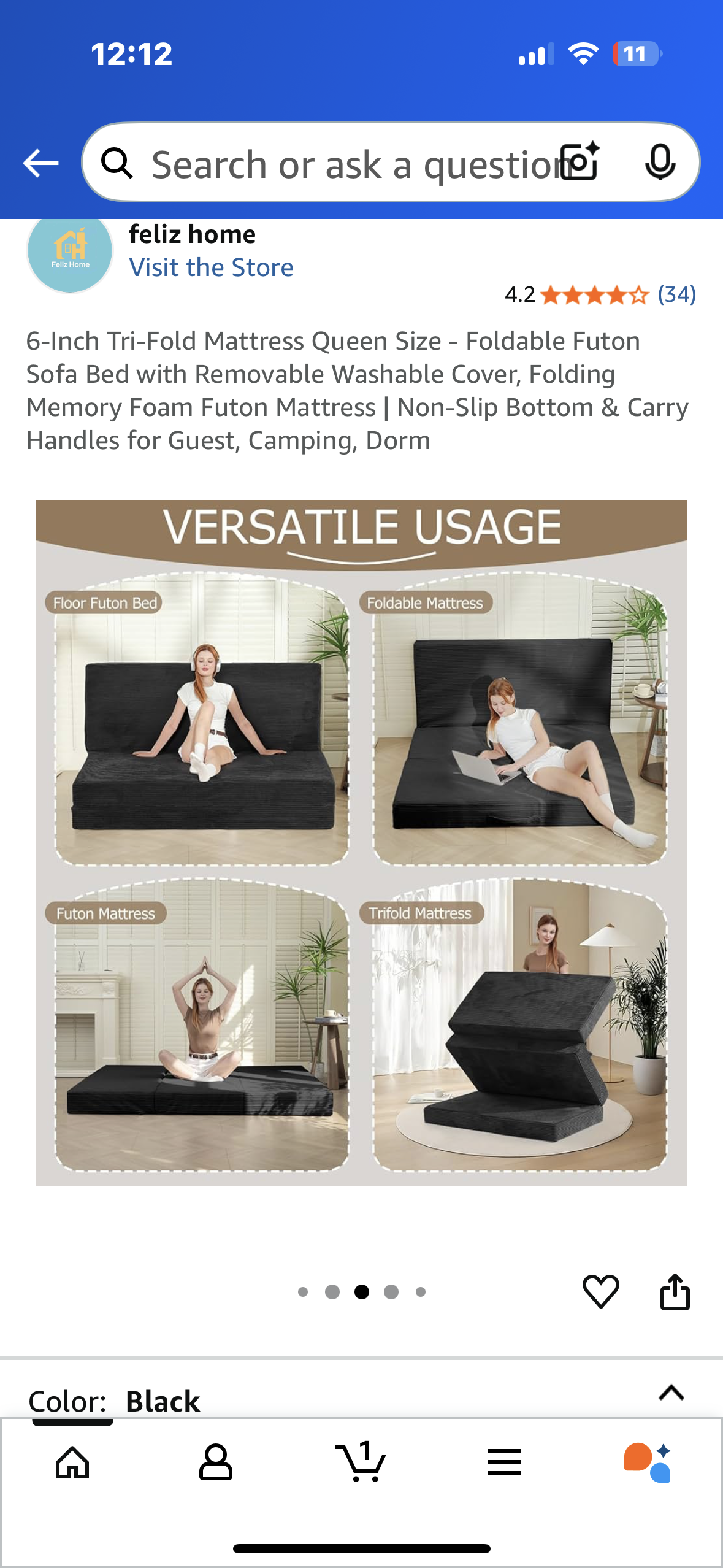 - Please not that the actual thickness of the mattress is 5 1/4”.